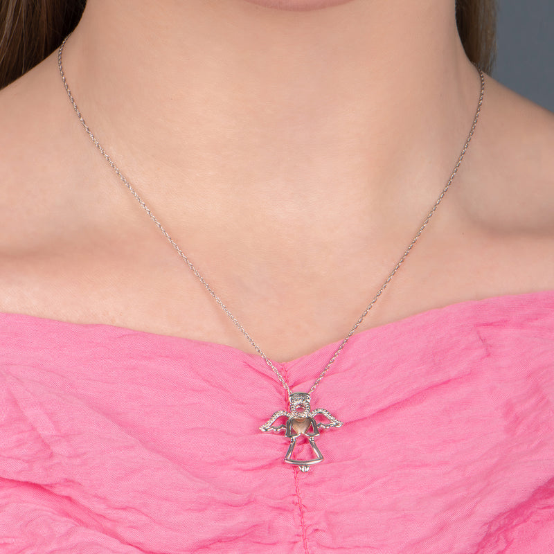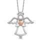 • Sterling Silver and 10K Rose Gold With Natural White Diamond Angel Heart Pendant Necklace