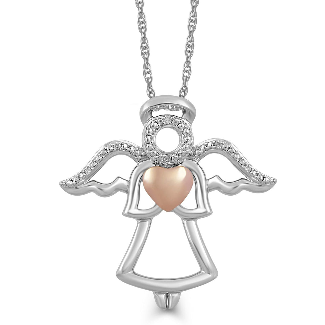 Jewelili Sterling Silver and 10K Rose Gold With Natural White Diamond Angel Heart Pendant Necklace