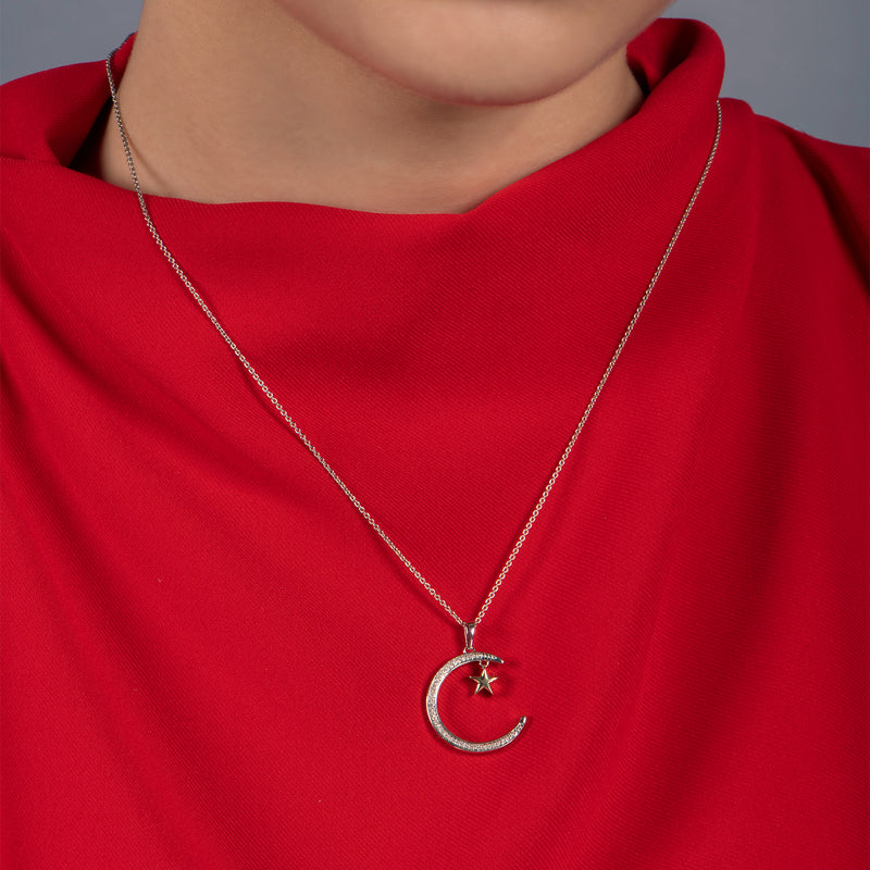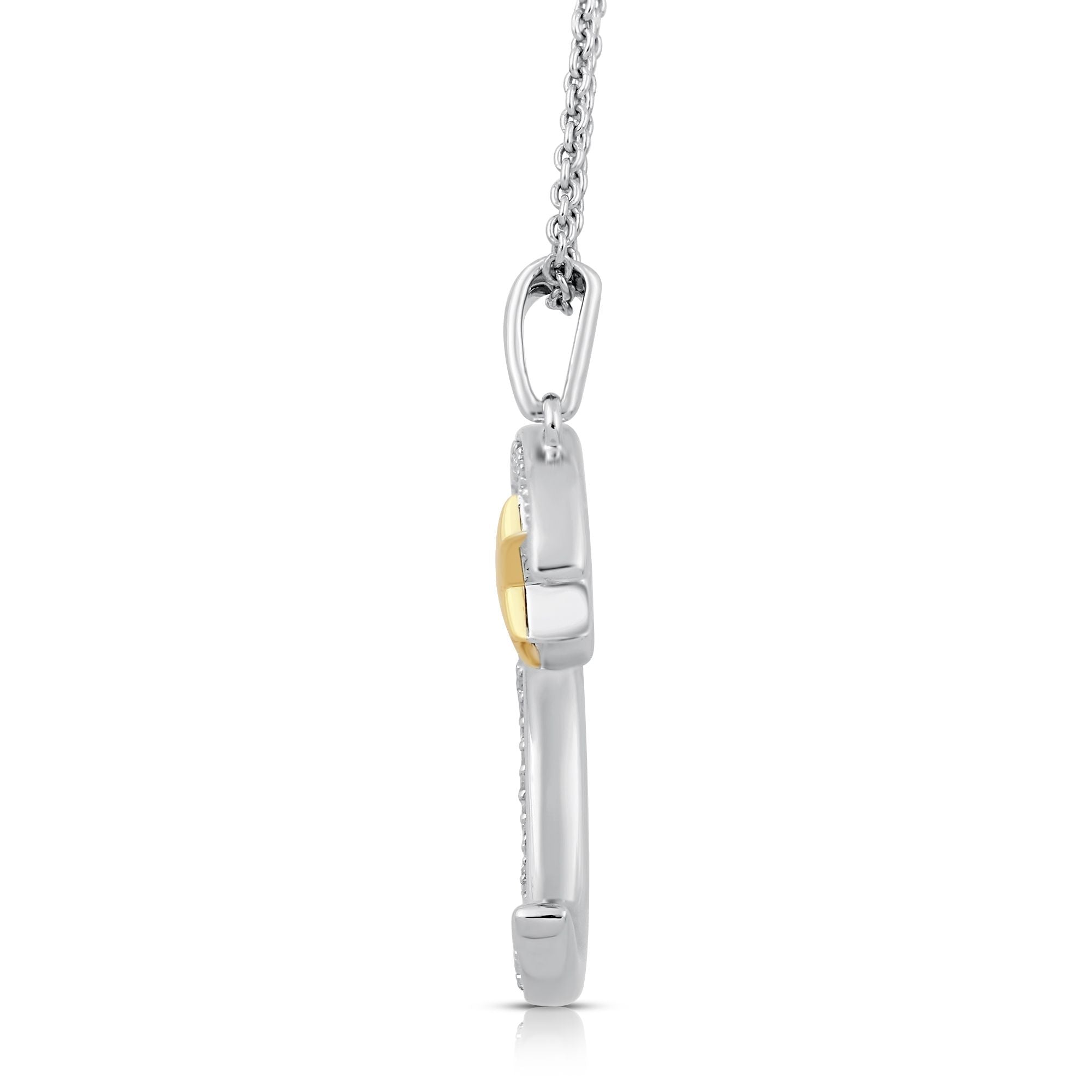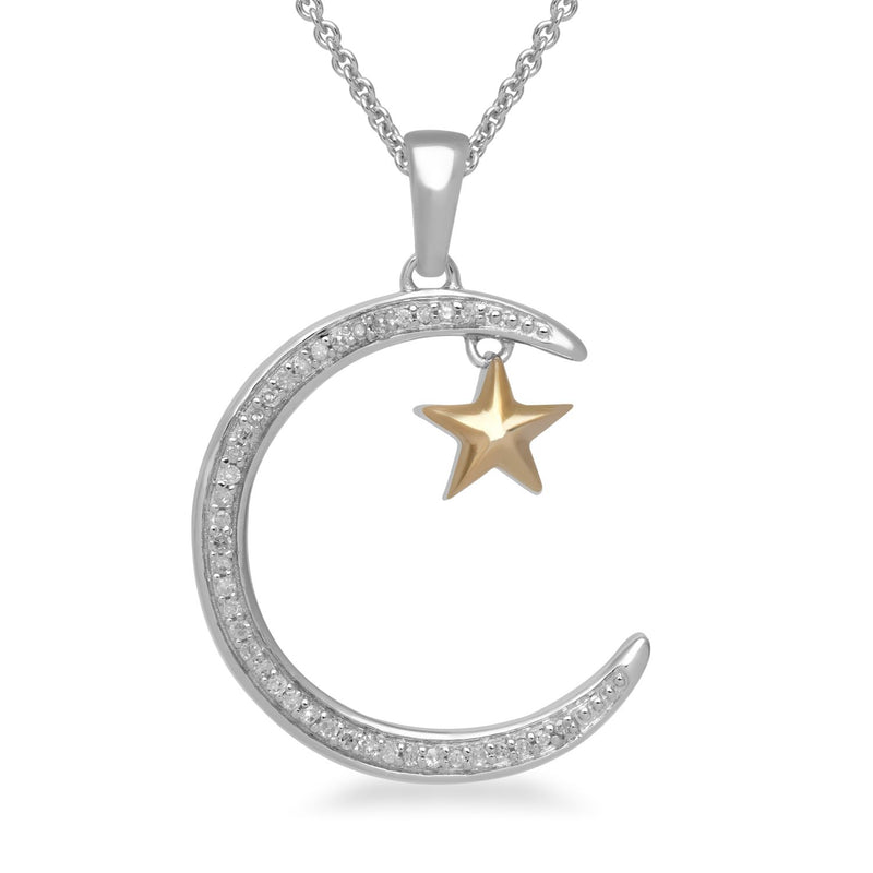 • Sterling Silver and 10K Yellow Gold 1/10 Cttw Diamonds Moon and Star Pendant Necklace