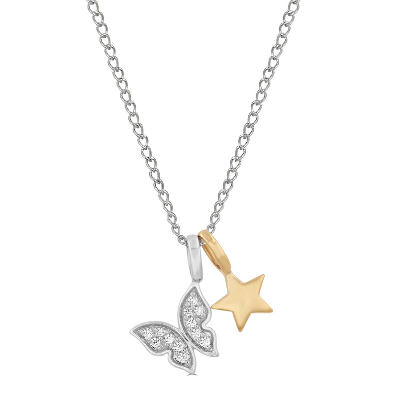 • Sterling Silver and 10K Yellow Gold With Diamonds Butterfly Star Pendant Necklace