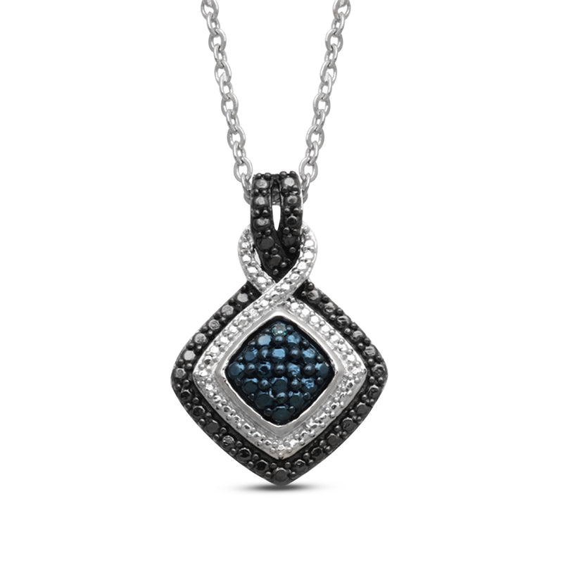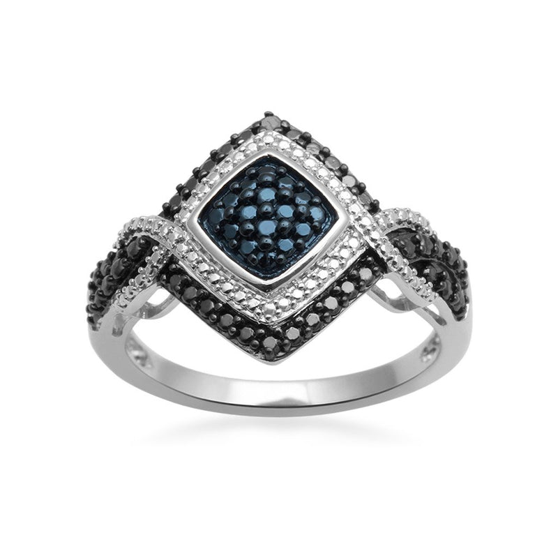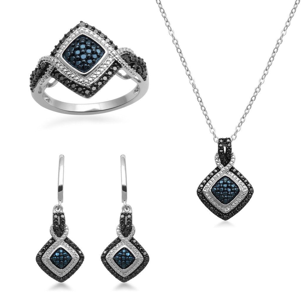 • Jewelili Sterling Silver and White Brass With White and Treated Blue, Black Diamonds Ring, Pendant Necklace and Dangle Earrings Box Set