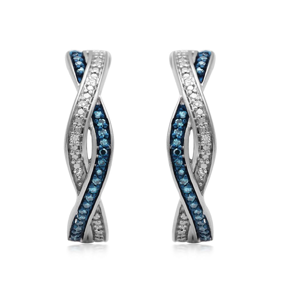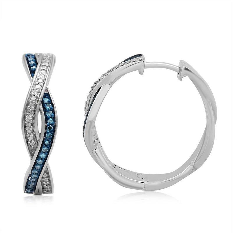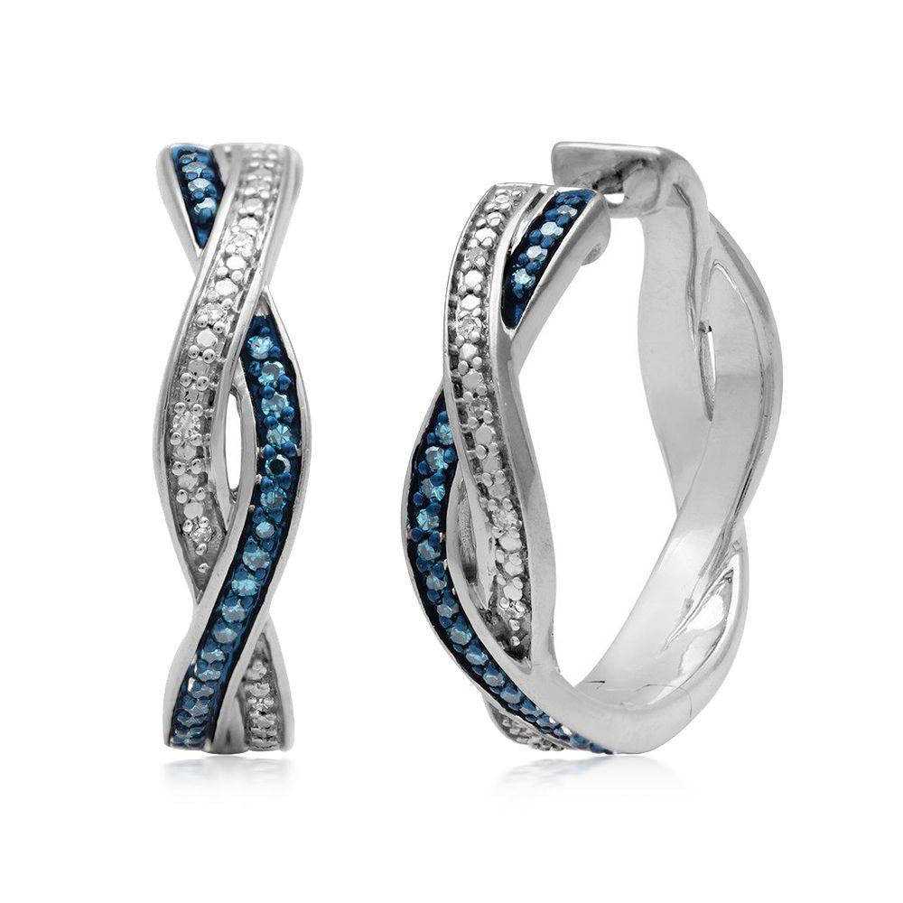 Jewelili Sterling Silver 1/6 CTTW Treated Blue and Natural White Round Diamonds Twisted Hoop Earrings