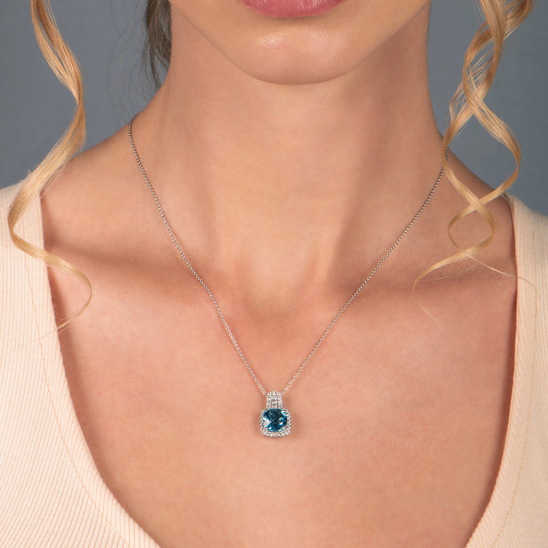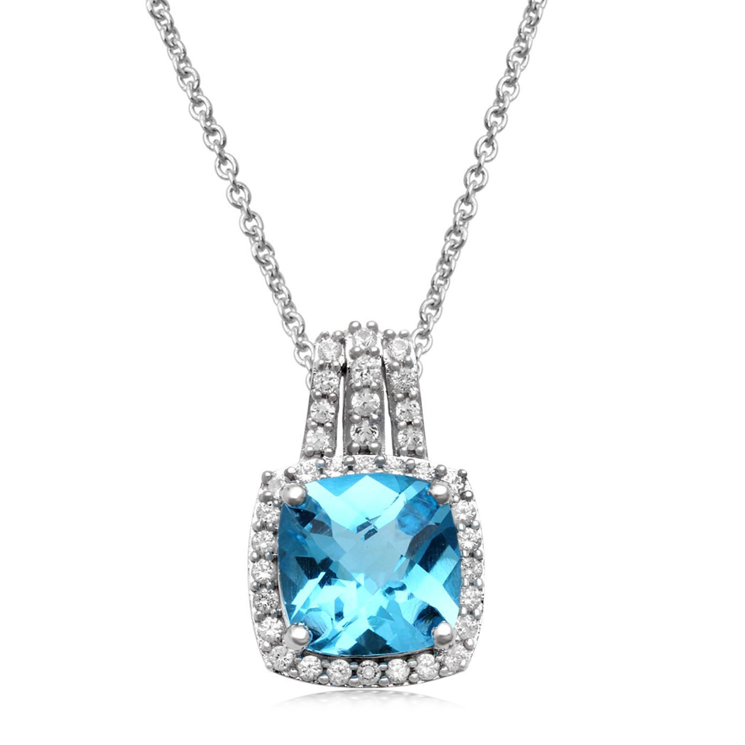 Details: Sterling Silver Blue Topaz Cushion with Created White Sapphire Pendant Necklace, 18"