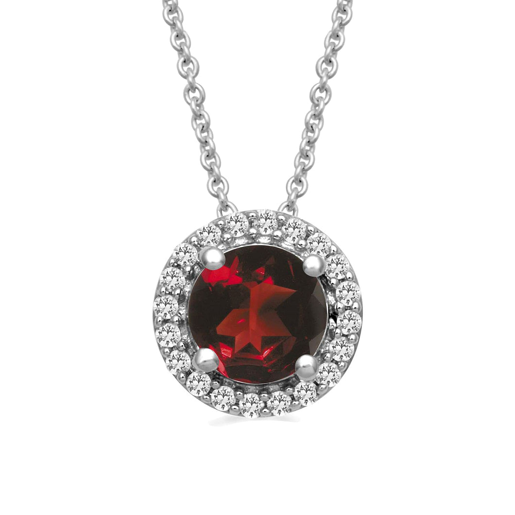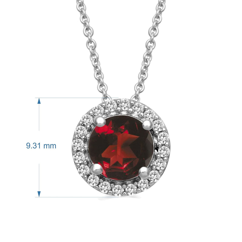 Jewelili Sterling Silver Checker Board Round Garnet and Round Created White Sapphire Pendant Necklace