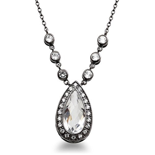Jewelili Sterling Silver With Created White Quartz and Created White Sapphire Pendant Necklace