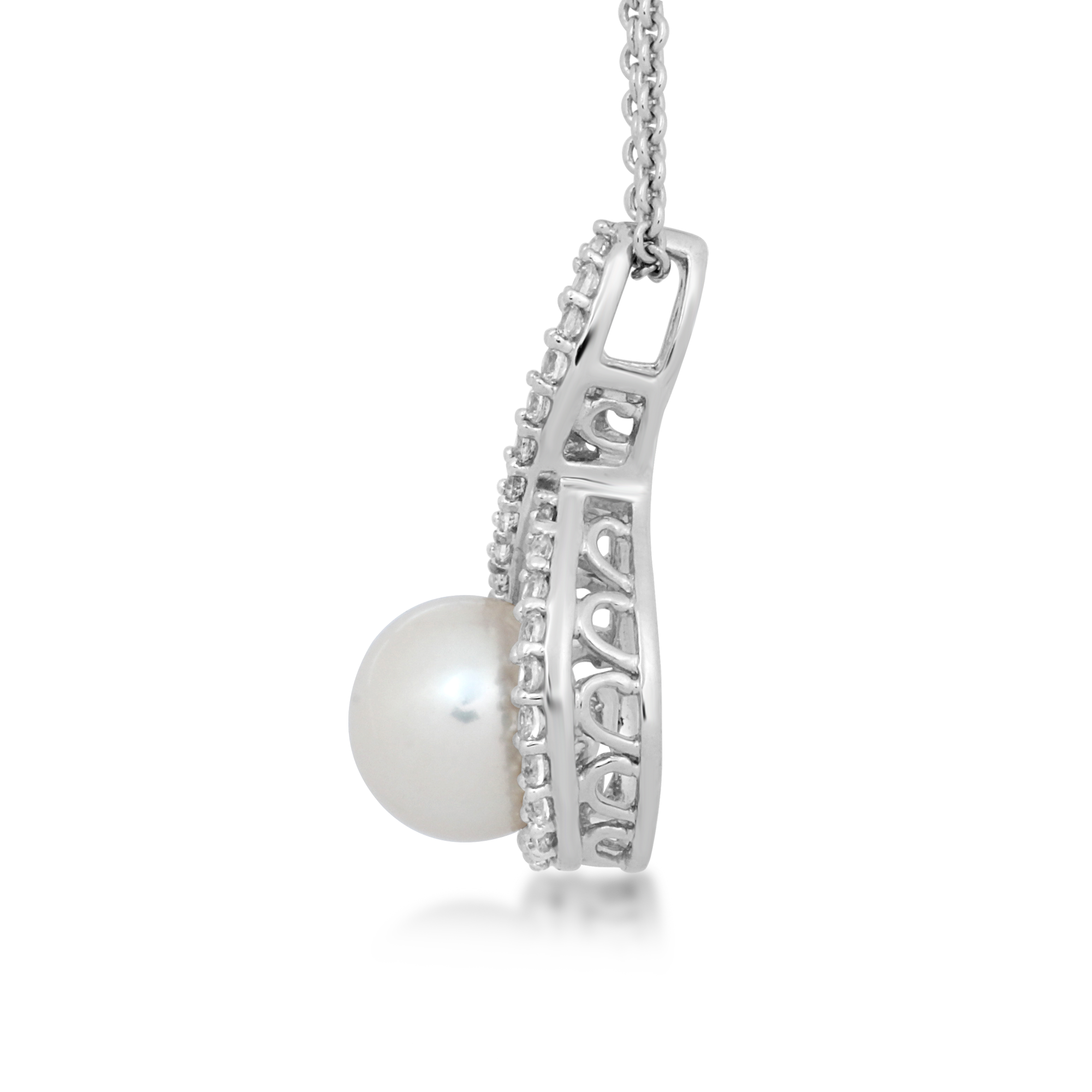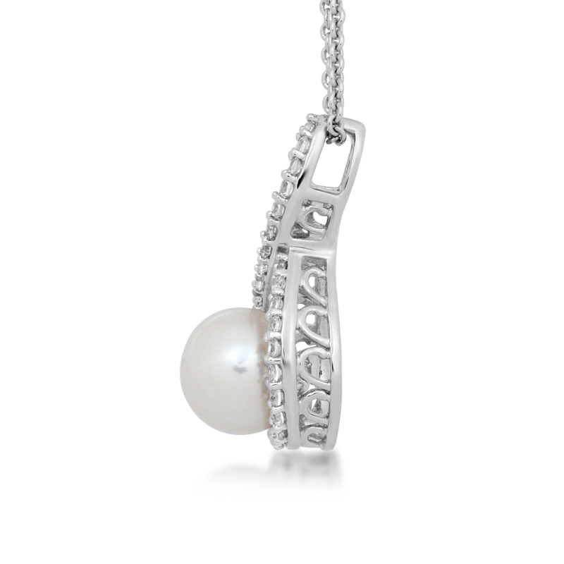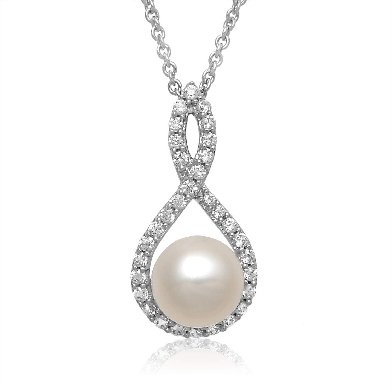 Details: Sterling Silver Round Cultured Pearl and White Cubic Zirconia Pendant, 18"
