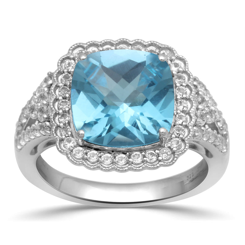 Details: Sterling Silver 10 X 10mm Cushion London Blue Topaz and White Topaz Ring