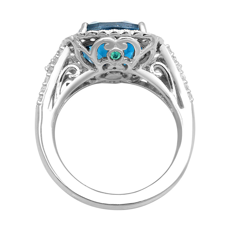 • Sterling silver ring studded with cushion London Blue Topaz and round white topaz