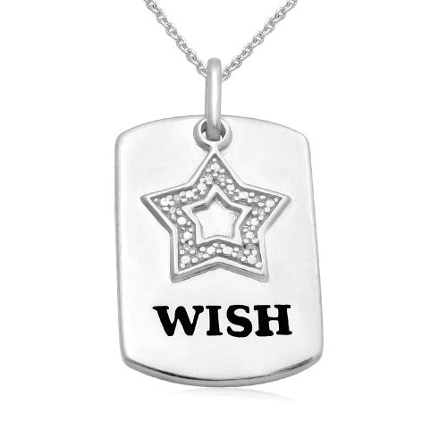 Jewelili Sterling Silver Diamonds Black Enamel Wish Pendant Necklace