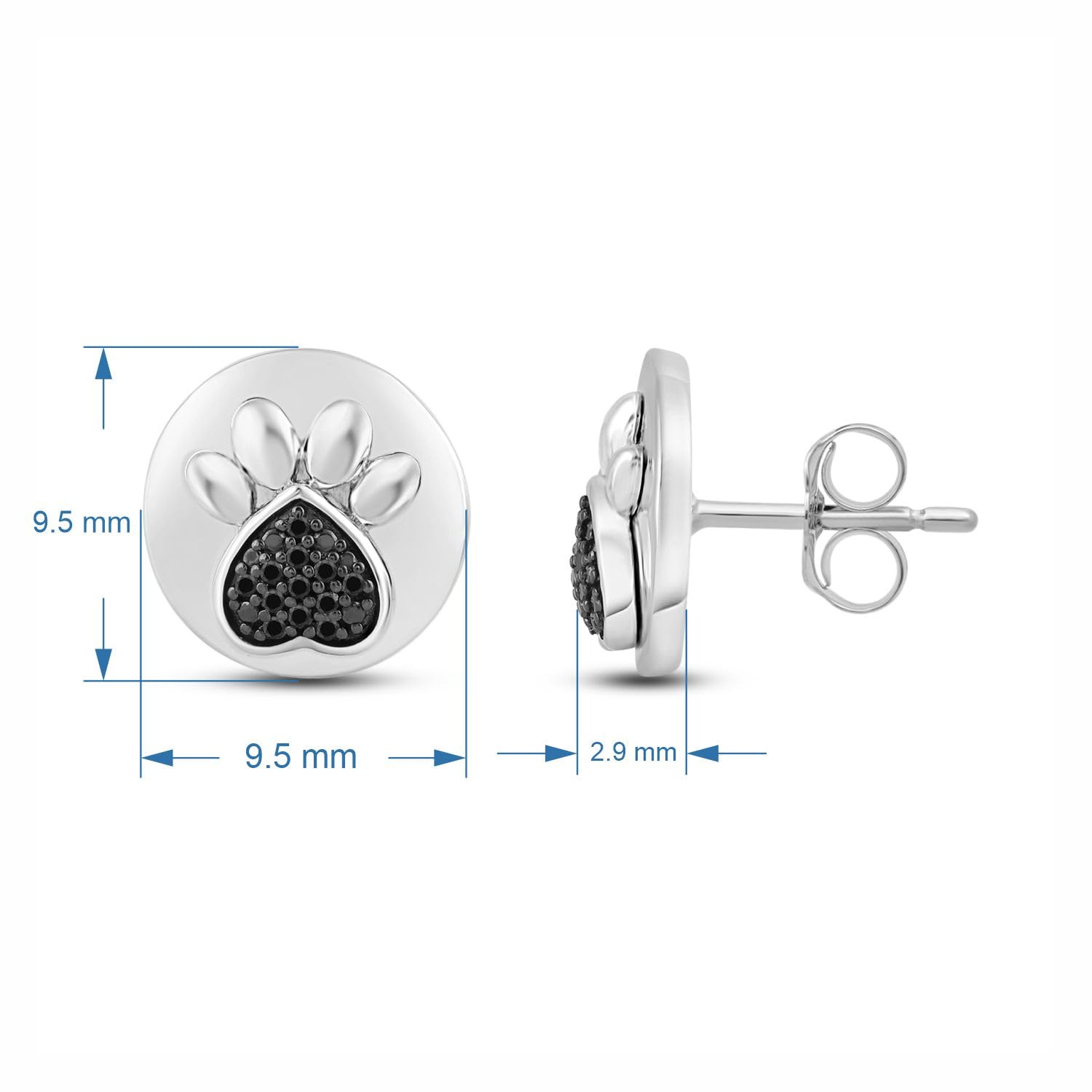 Jewelili Sterling Silver Natural Black Round Diamond Paw Print Stud Earrings