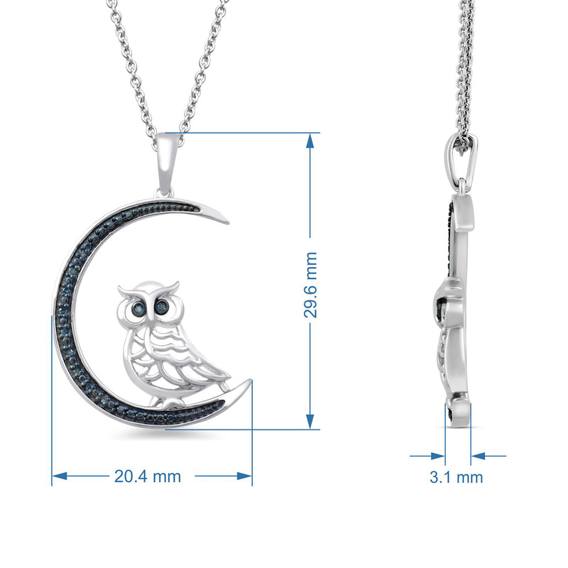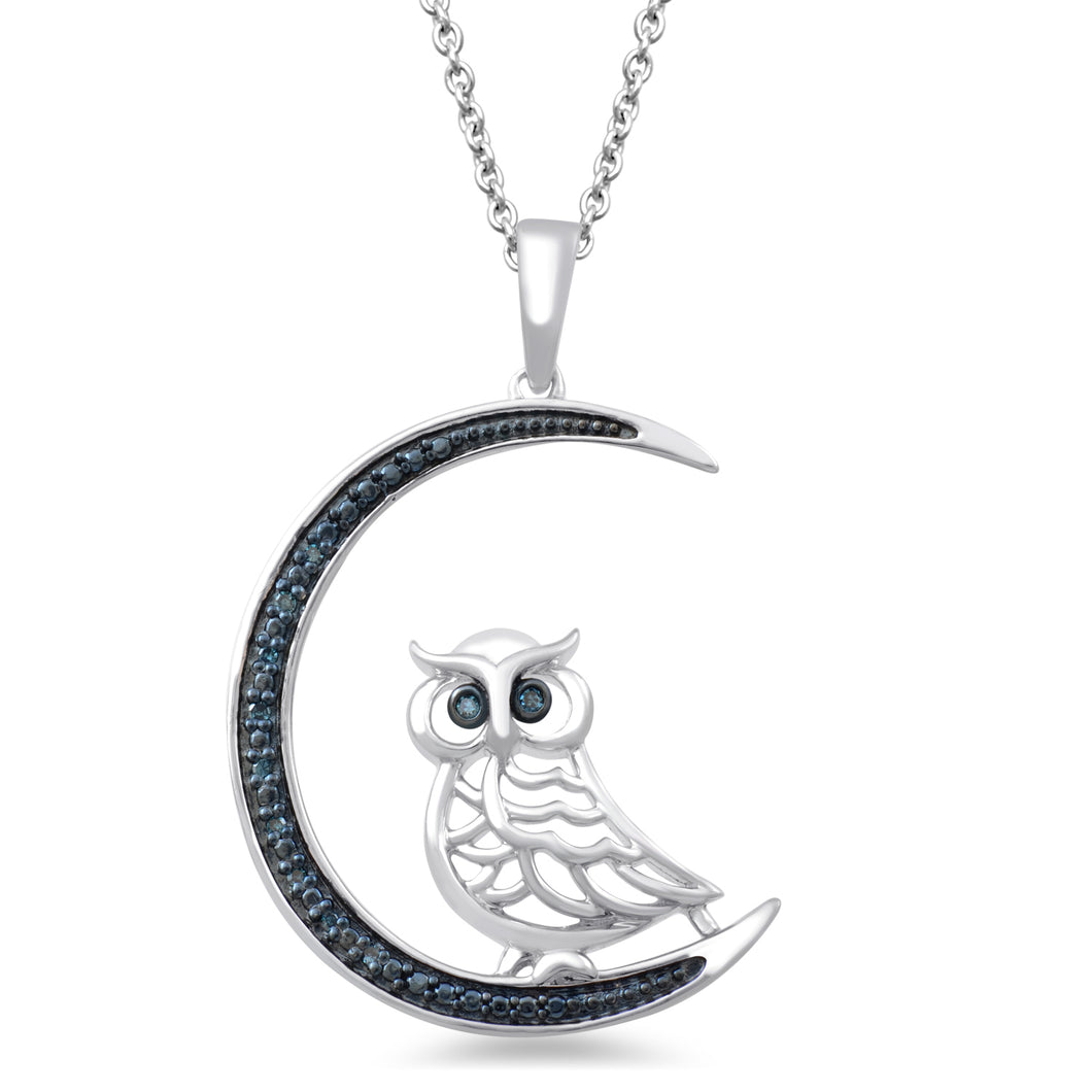 Jewelili Sterling Silver Treated Blue Diamonds Owl On Moon Pendant Necklace