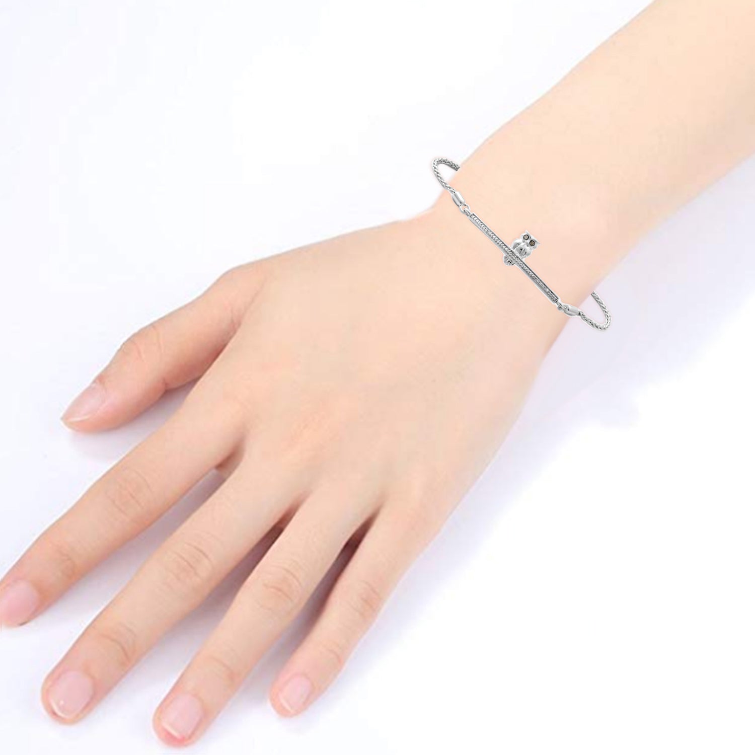 • Load image into Gallery viewer, Jewelili Owl Bolo Bracelet with Natural Champagne and White Round Diamonds in Sterling Silver 9.5" View 1