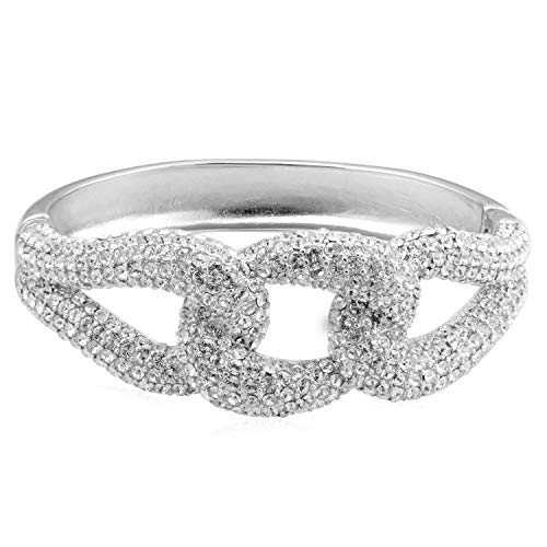 Jewelili Sterling Silver With White Round Clear Crystal Fashion Bangle