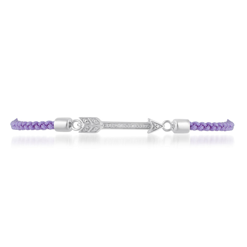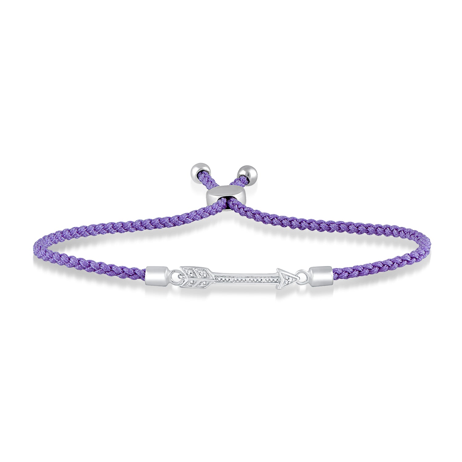 Jewelili Sterling Silver With Natural White Round Diamonds Arrow Bolo Bracelet