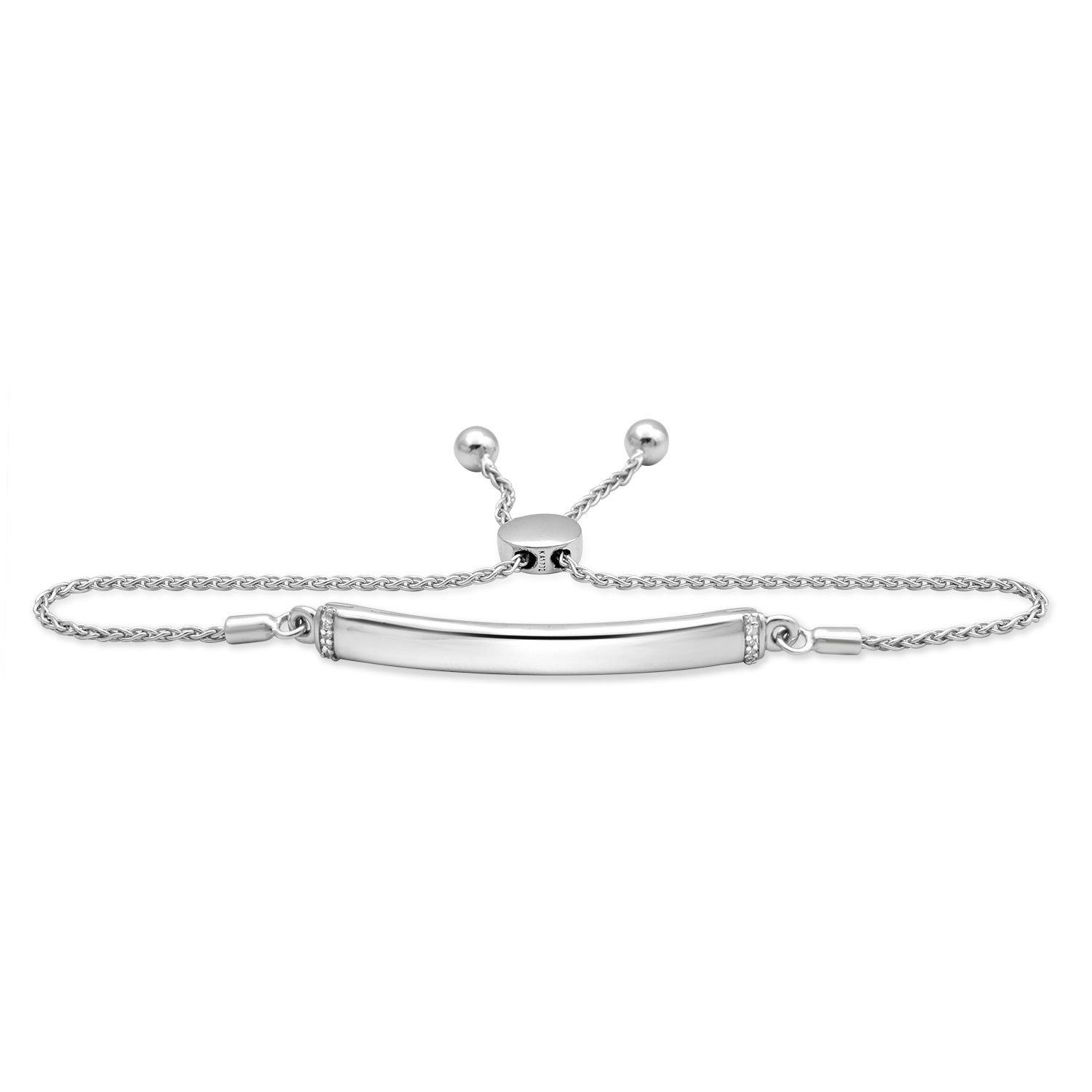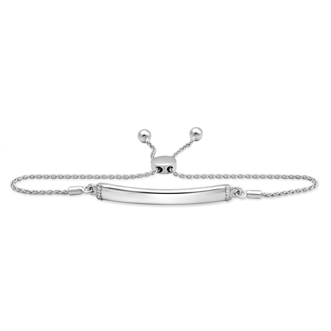Jewelili Sterling Silver Natural White Round Diamonds Bolo Bracelet, 9.5"