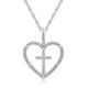 • Load image into Gallery viewer, Jewelili Cross Heart Pendant Necklace with Natural White Round Diamonds in Sterling Silver View 1