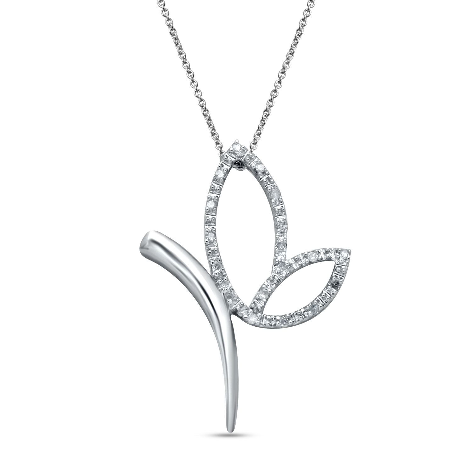 • Load image into Gallery viewer, Jewelili Butterfly Pendant Necklace Diamond Accent Jewelry in Sterling Silver - View 1