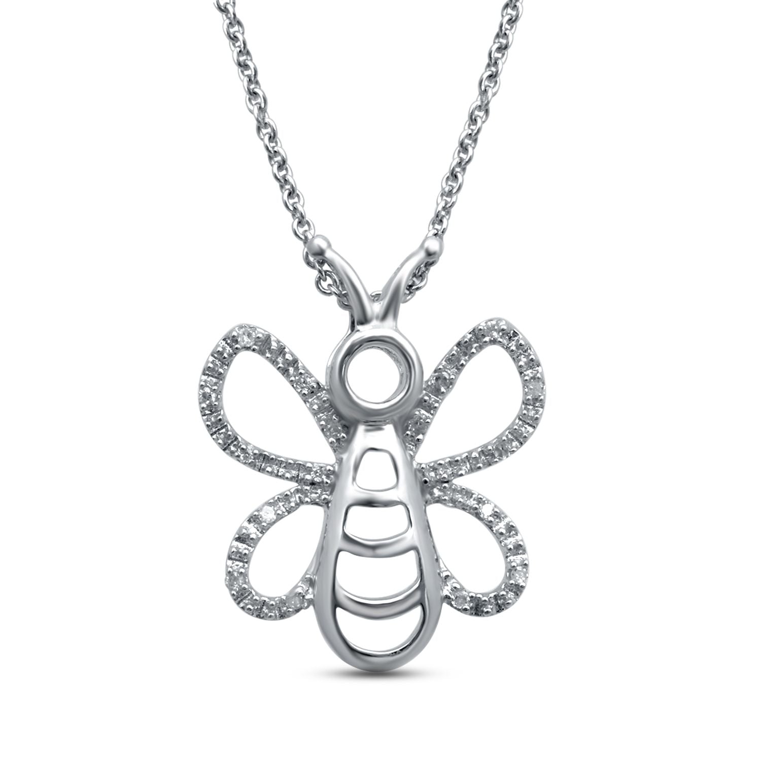Jewelili Sterling Silver Natural White Round Diamonds Honey Bee Pendant Necklace