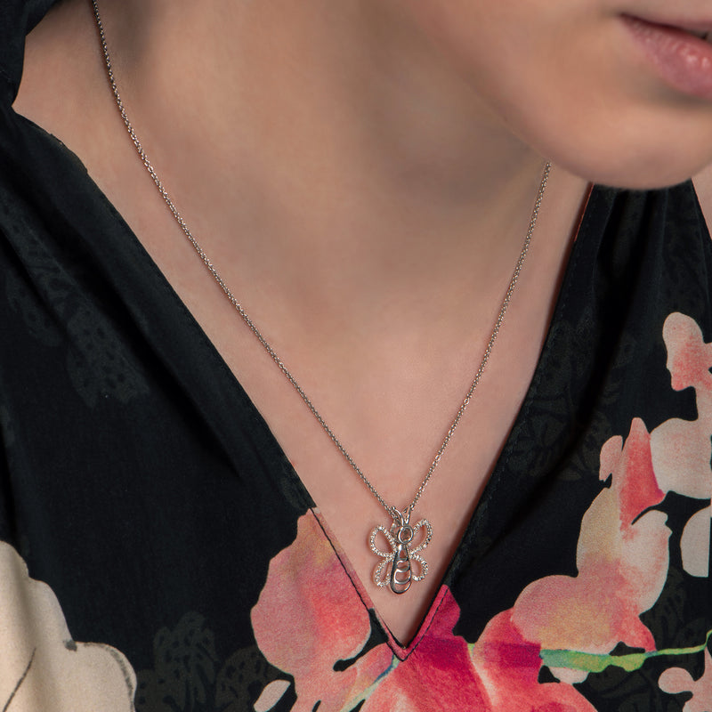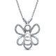 • Sterling Silver Natural White Round Diamonds Honey Bee Pendant Necklace