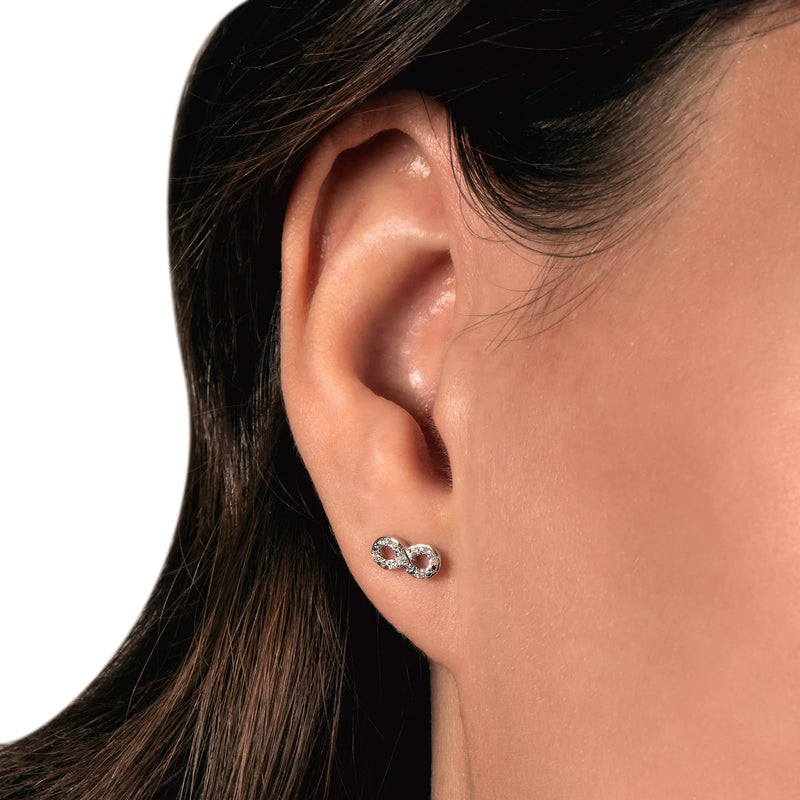 • Load image into Gallery viewer, Jewelili Infinity Stud Earrings with Natural White Round Diamonds in Sterling Silver View 5