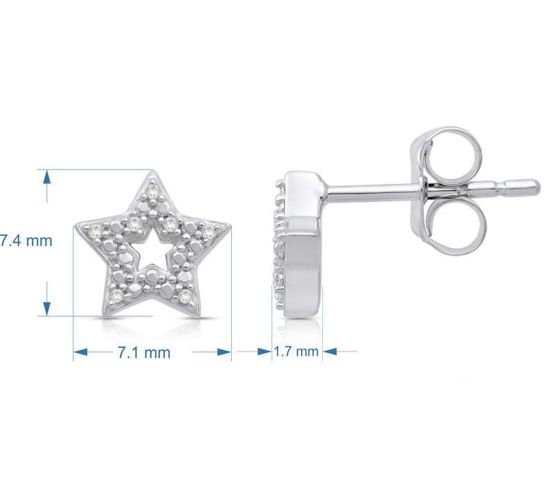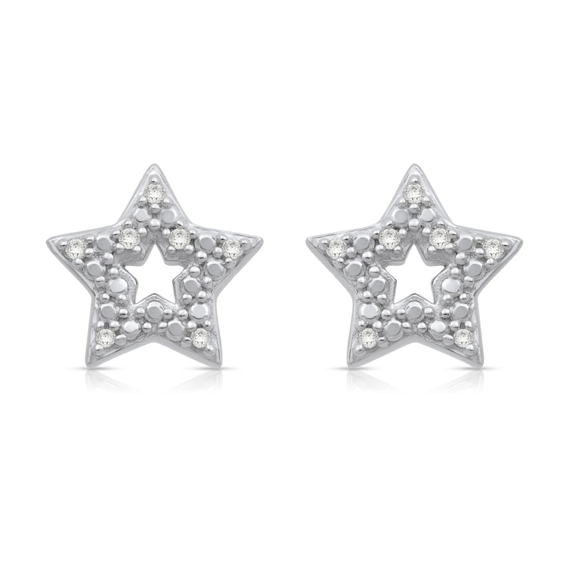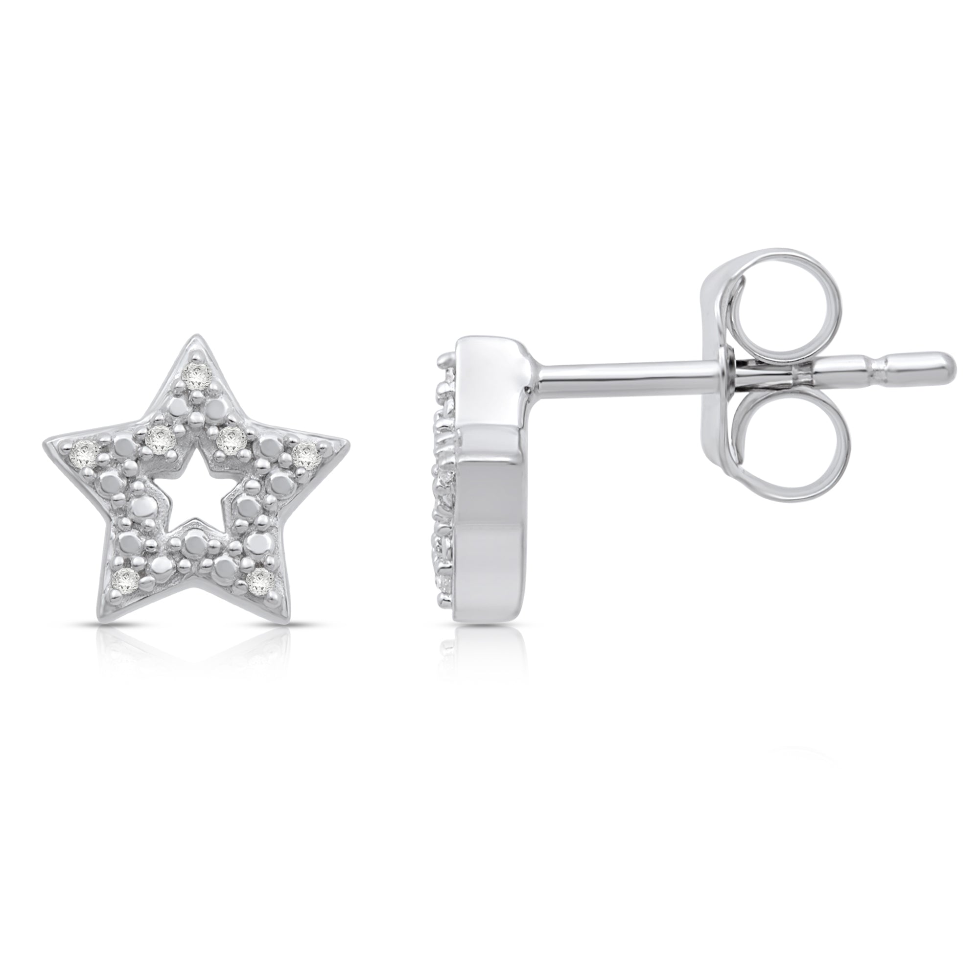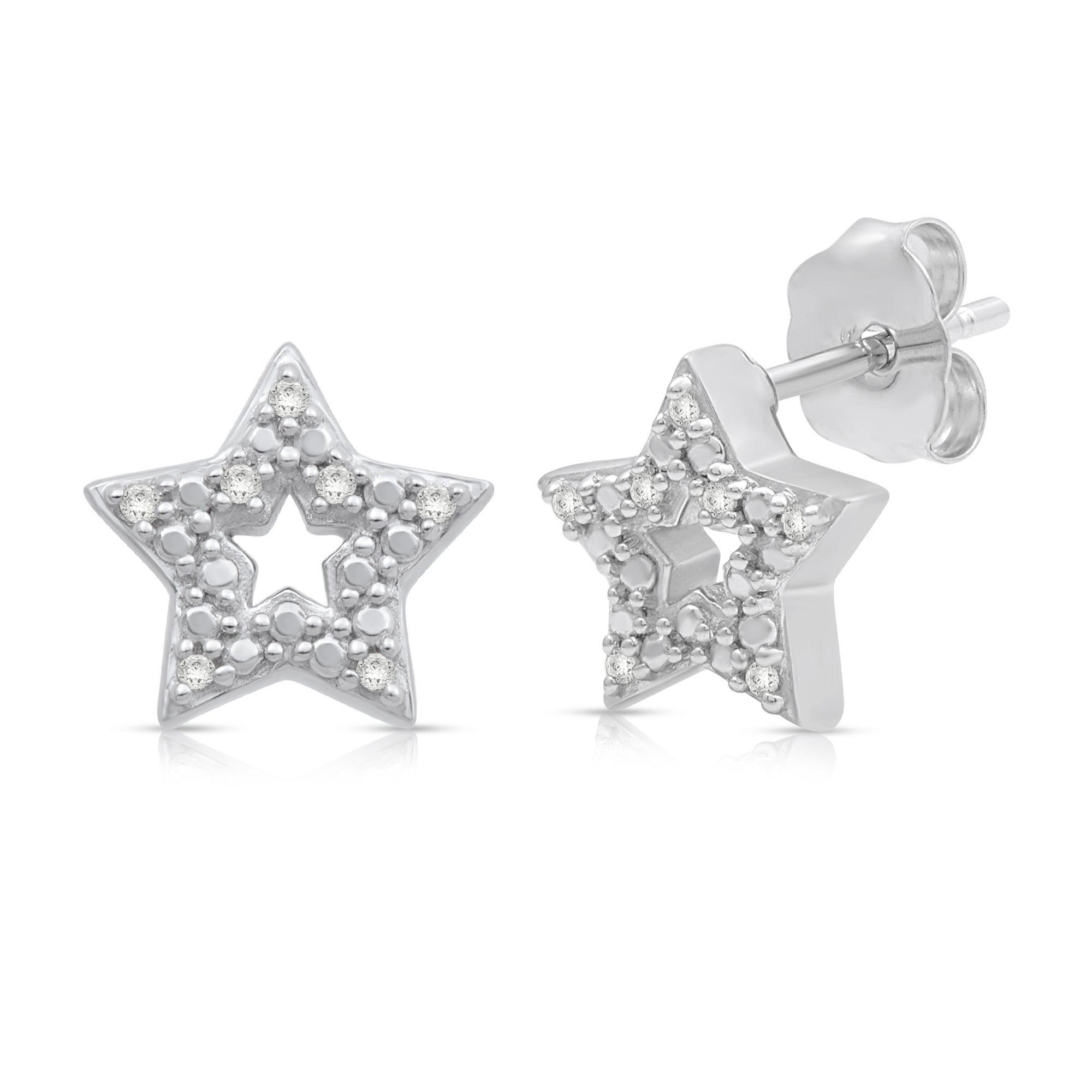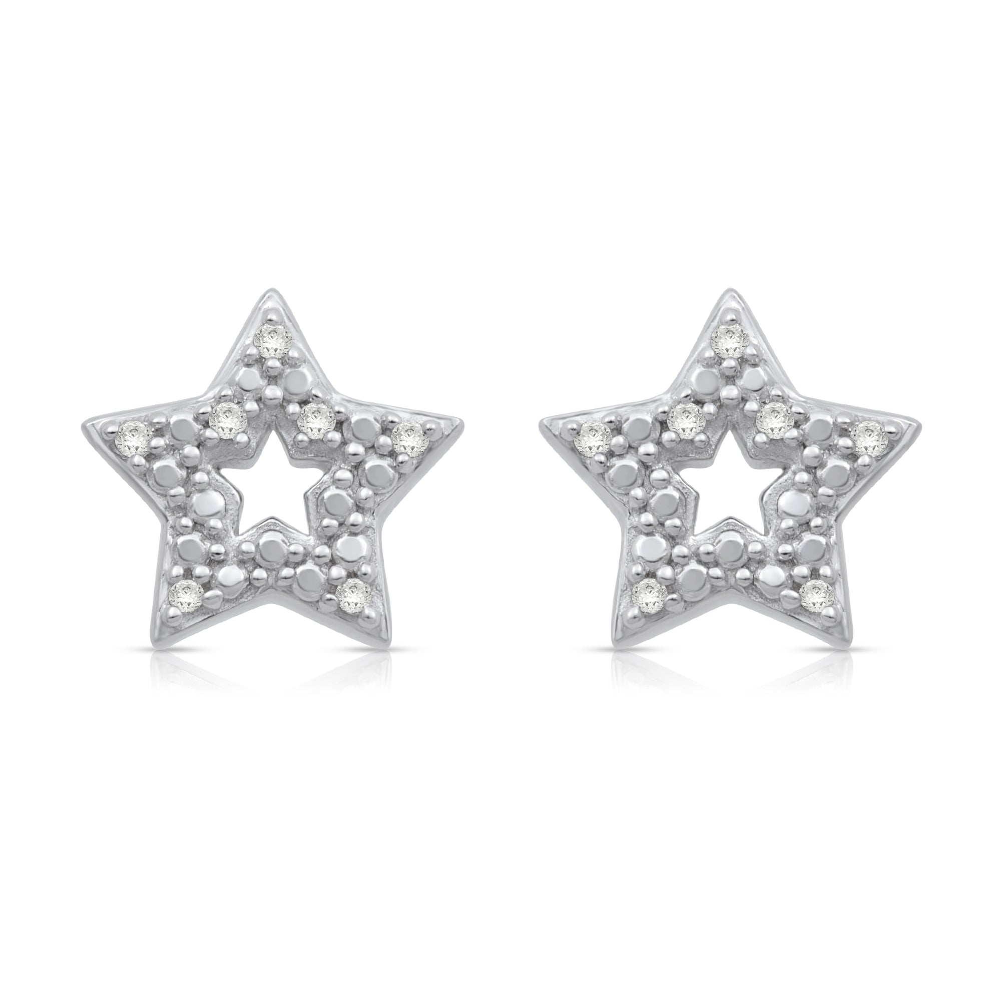 • Jewelili Sterling Silver Natural White Round Diamonds Open Star Stud Earrings