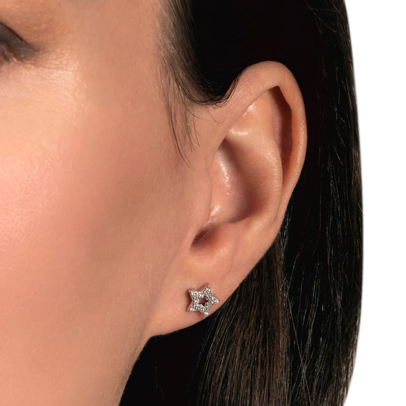• Load image into Gallery viewer, Jewelili Open Star Stud Earrings with Natural White Round Diamonds in Sterling Silver View 5