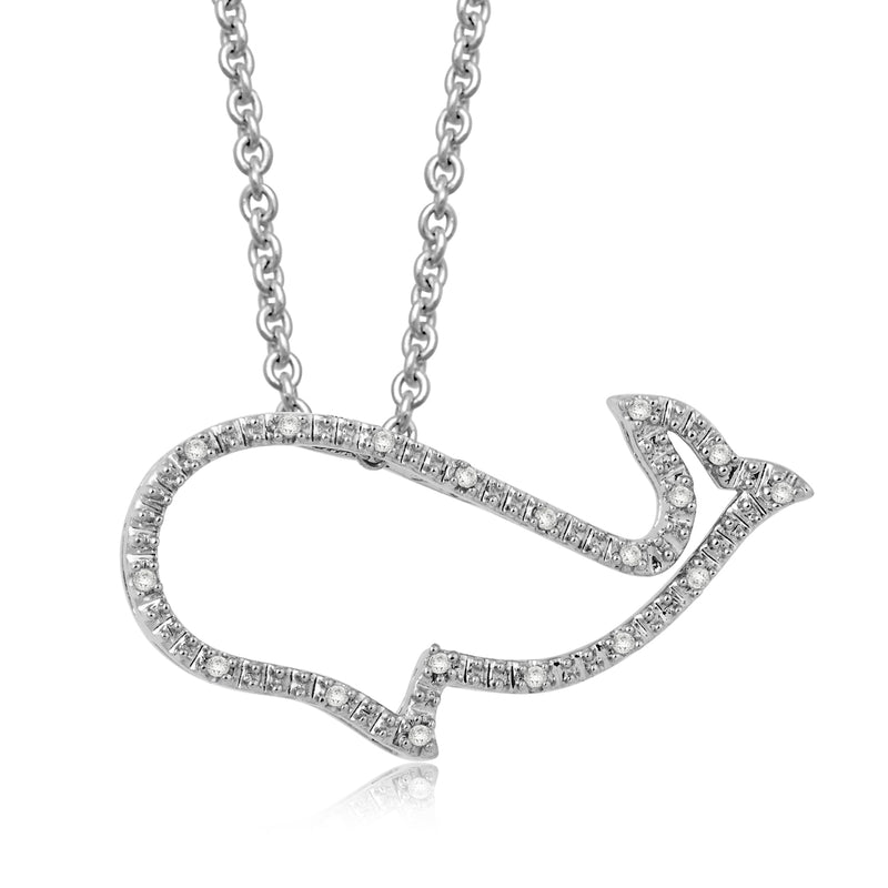 • Sterling Silver Natural White Round Diamonds Whale Pendant Necklace