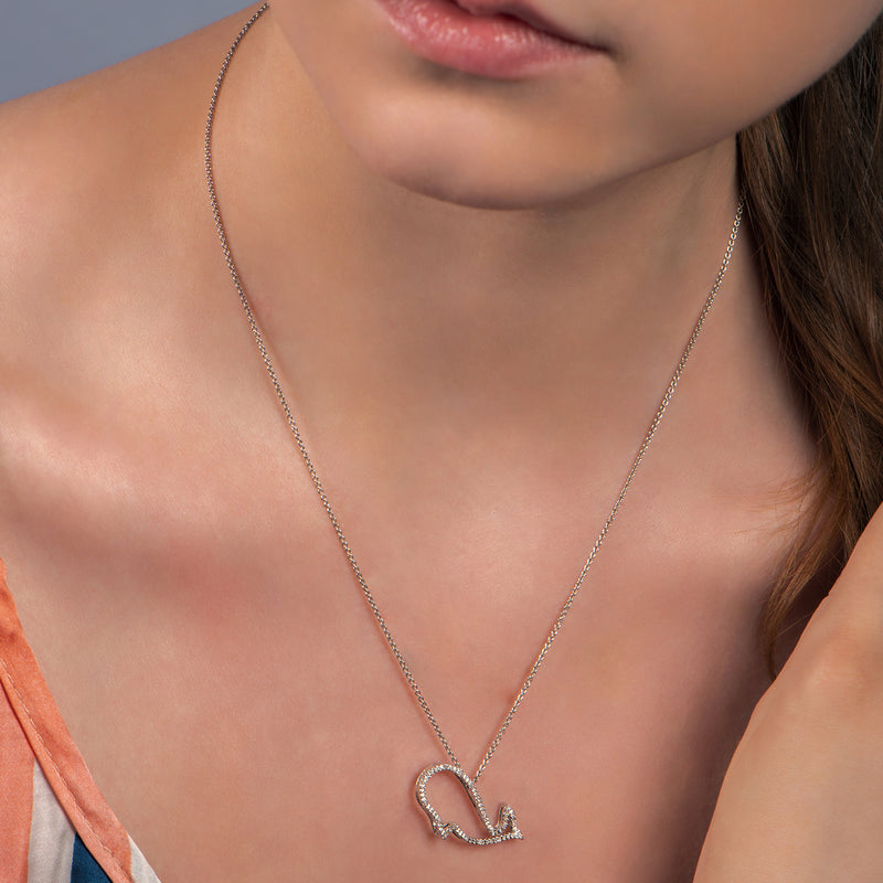 Jewelili Sterling Silver Natural White Round Diamonds Whale Pendant Necklace