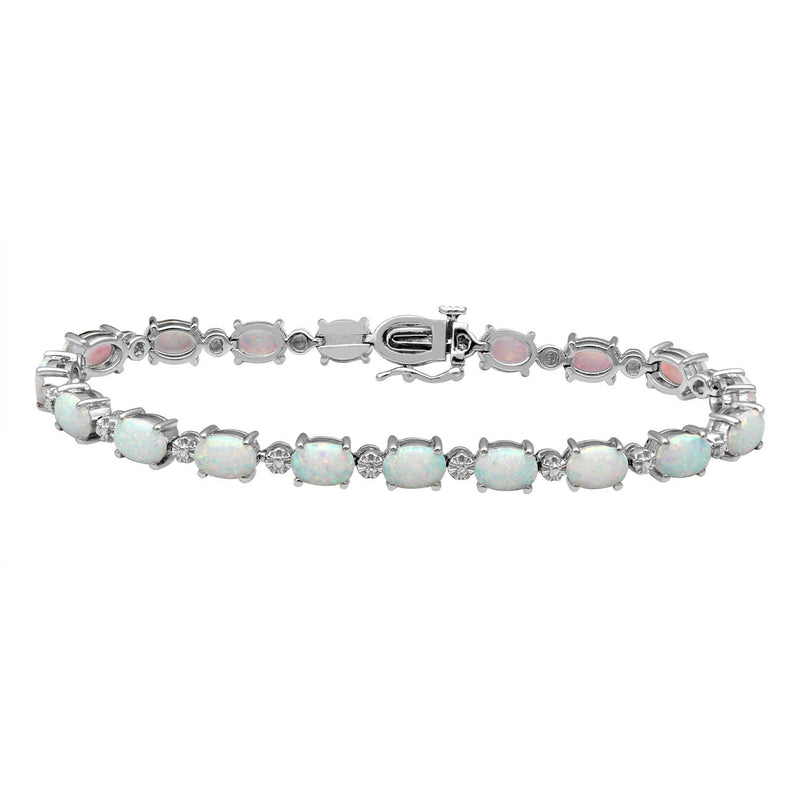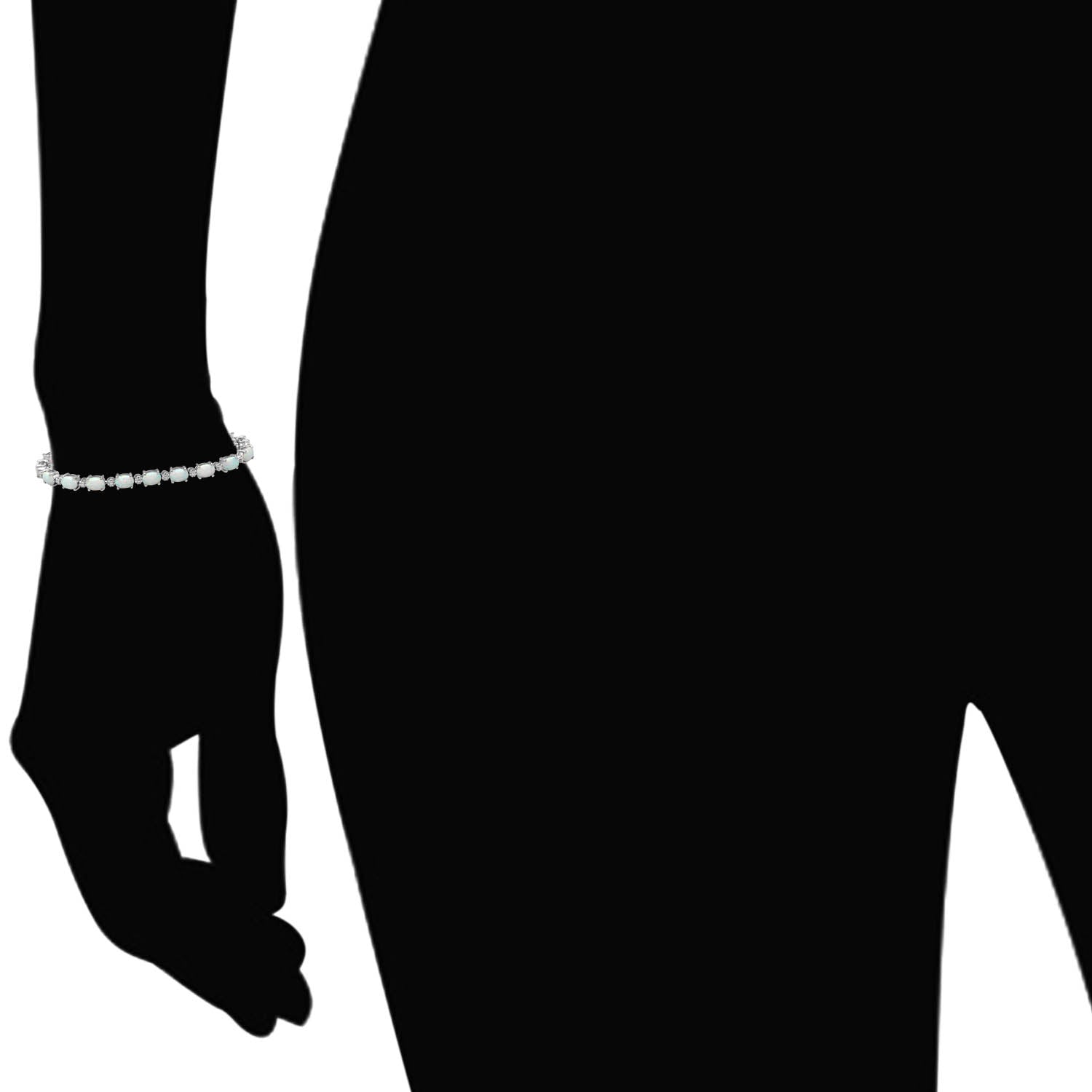 • Sterling Silver Oval Created Opal and Round Cubic Zirconia Link Bracelet, 7.5"
