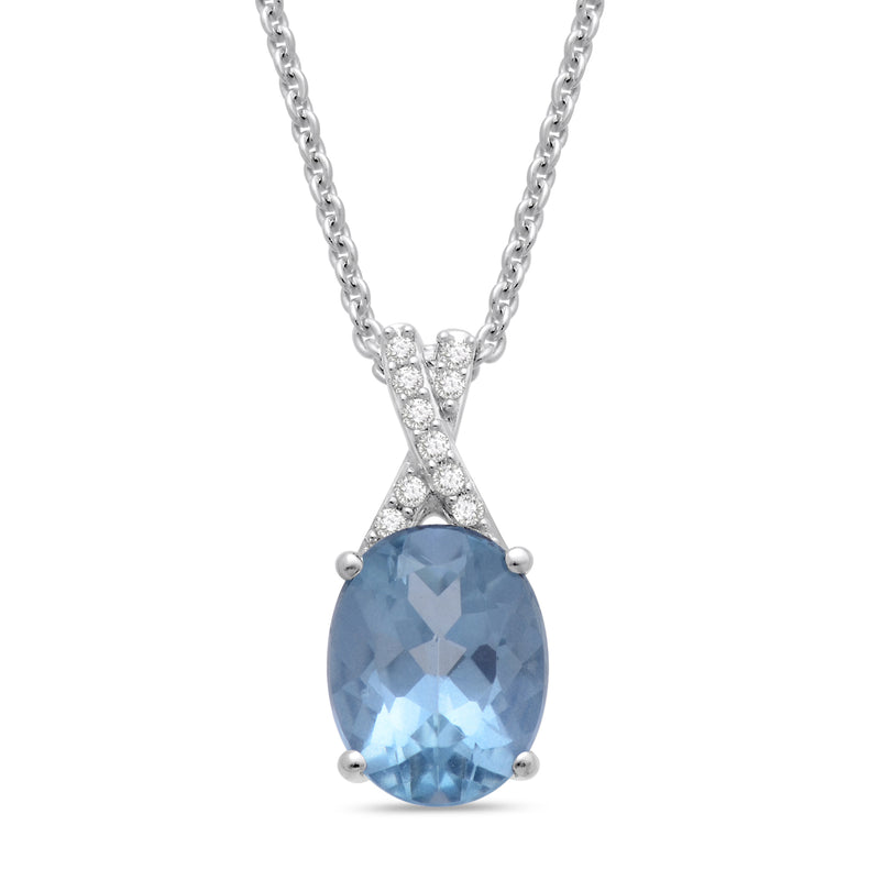 • Stylish pendant necklace sparkling with round created white sapphires and an aquamarine on an 18" cable chain