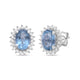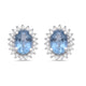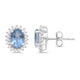 Jewelili Sterling Silver Oval Cut Aquamarine and Round Created White Sapphire Stud Earrings