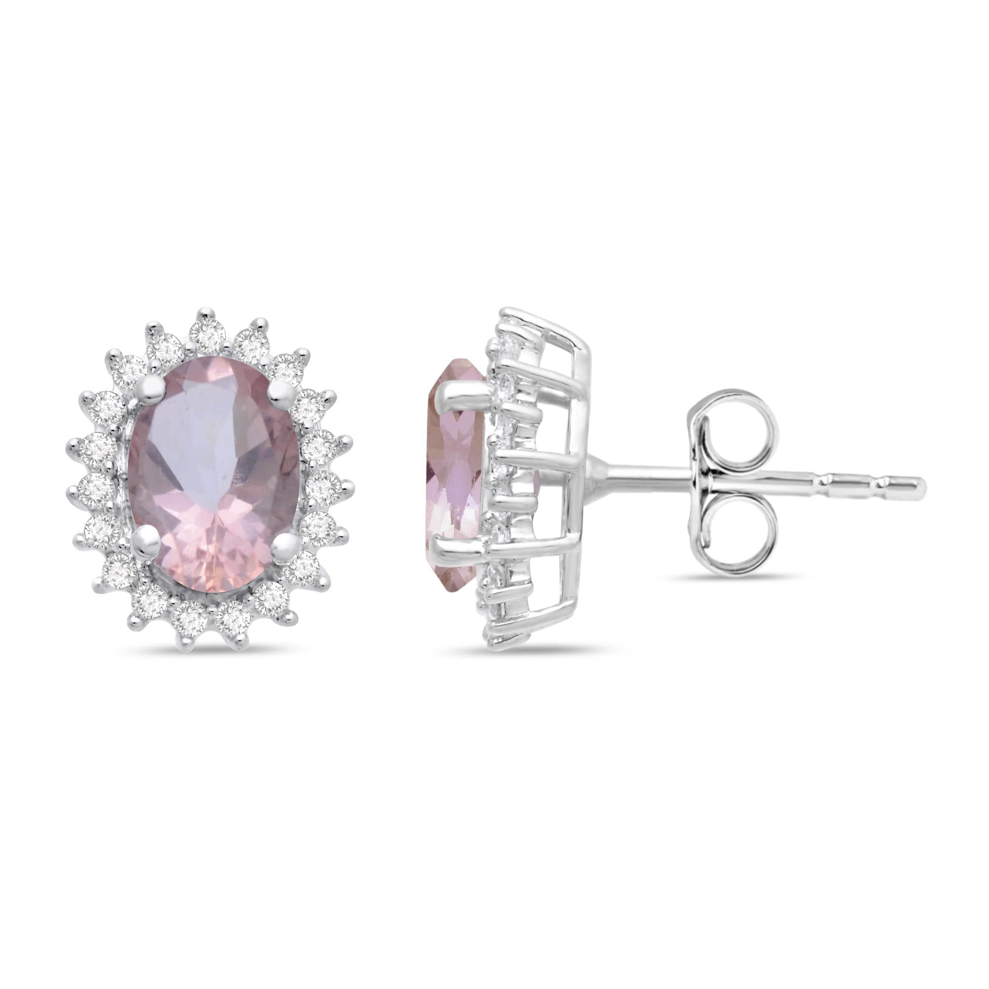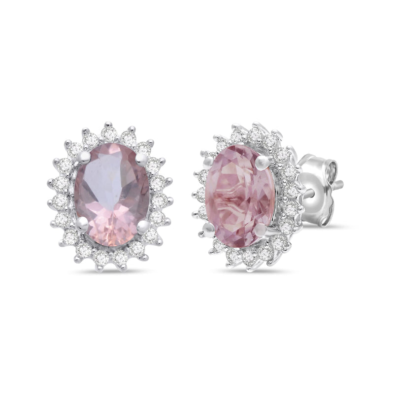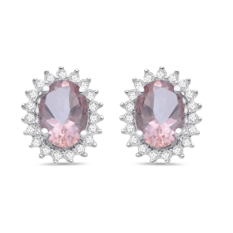 • The translucent beauty of the morganite is elevated by round created white sapphires in this pair of stud earrings.