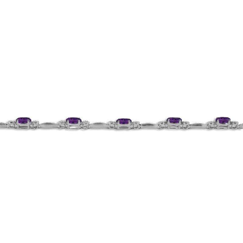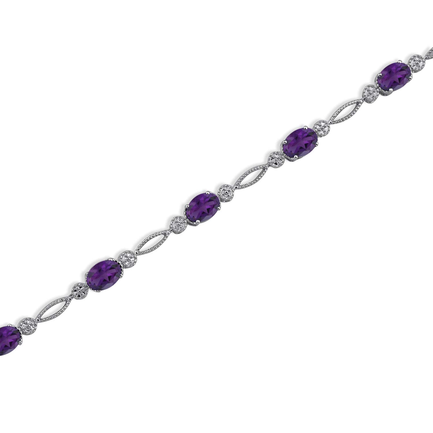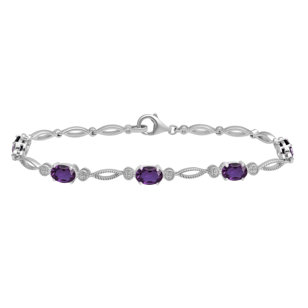 Jewelili Sterling Silver Oval Shape Amethyst Fashion Bracelet