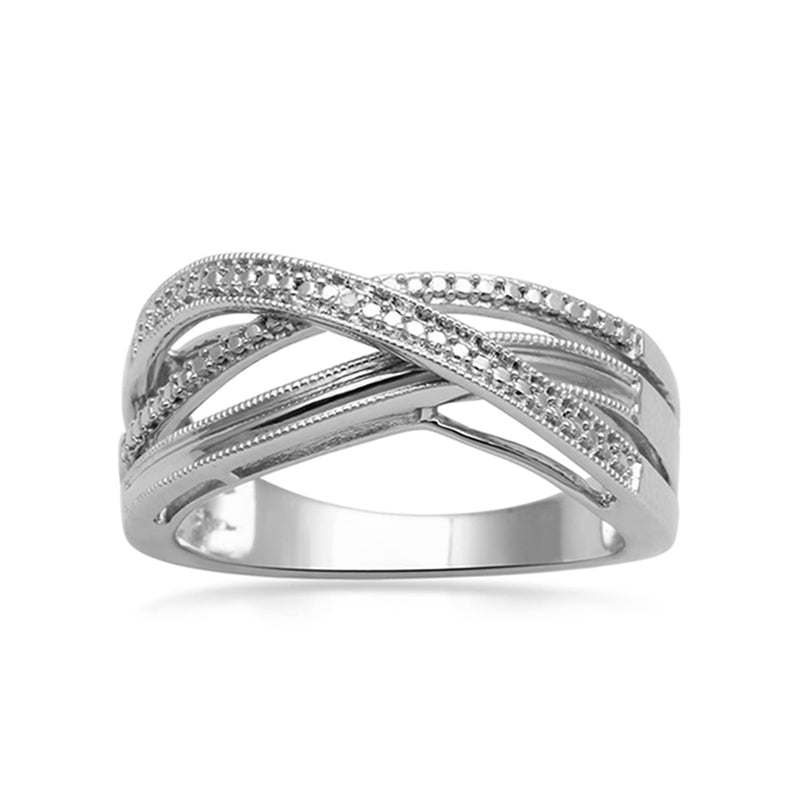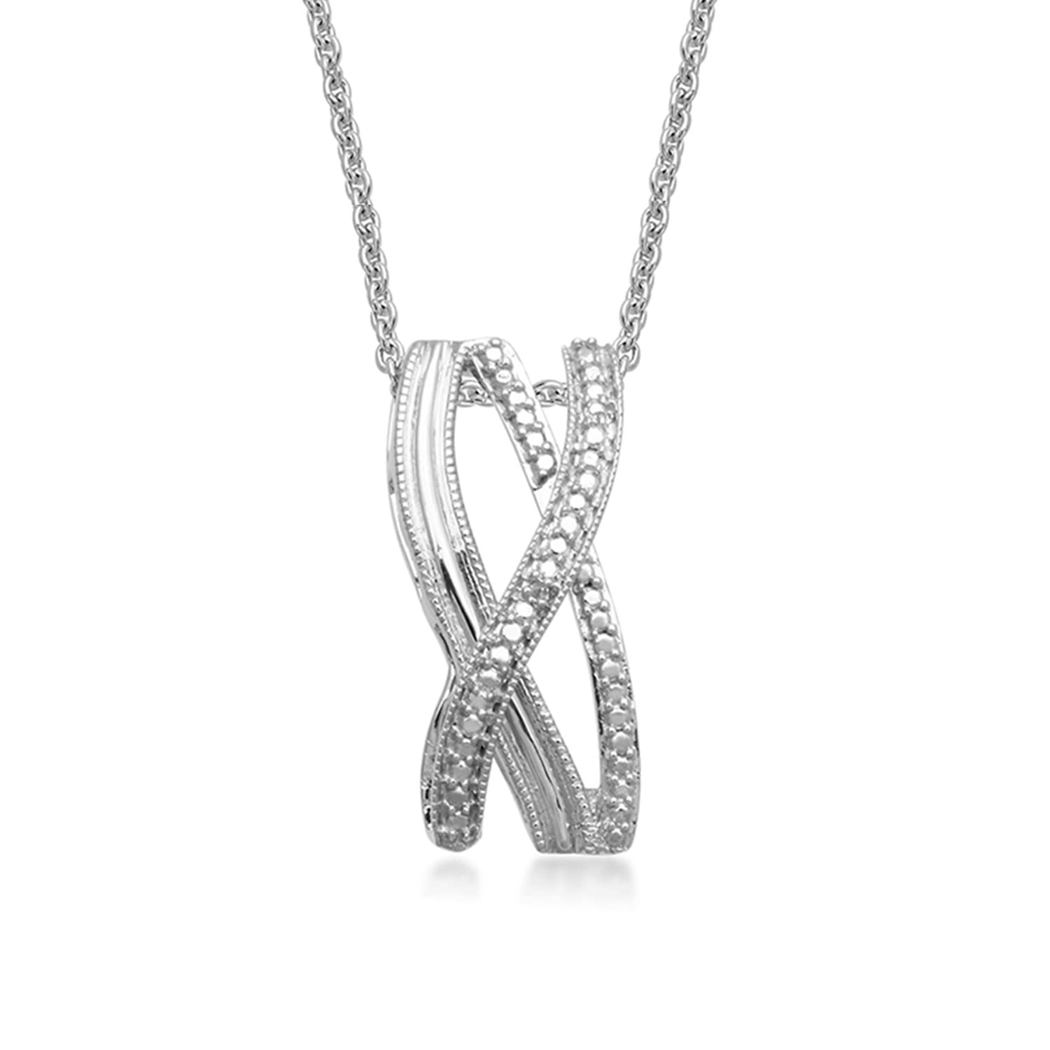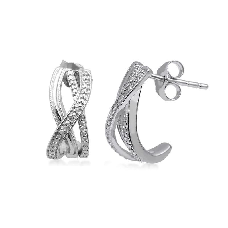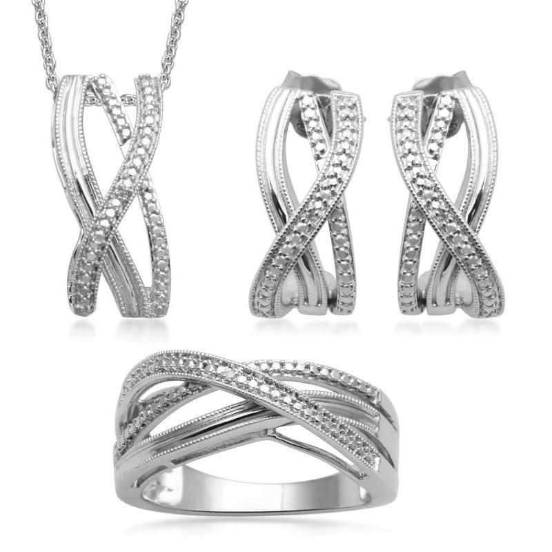 Details: Sterling Silver Over Brass With Natural White Diamond Crossover 3 Piece Jewelry Sets.