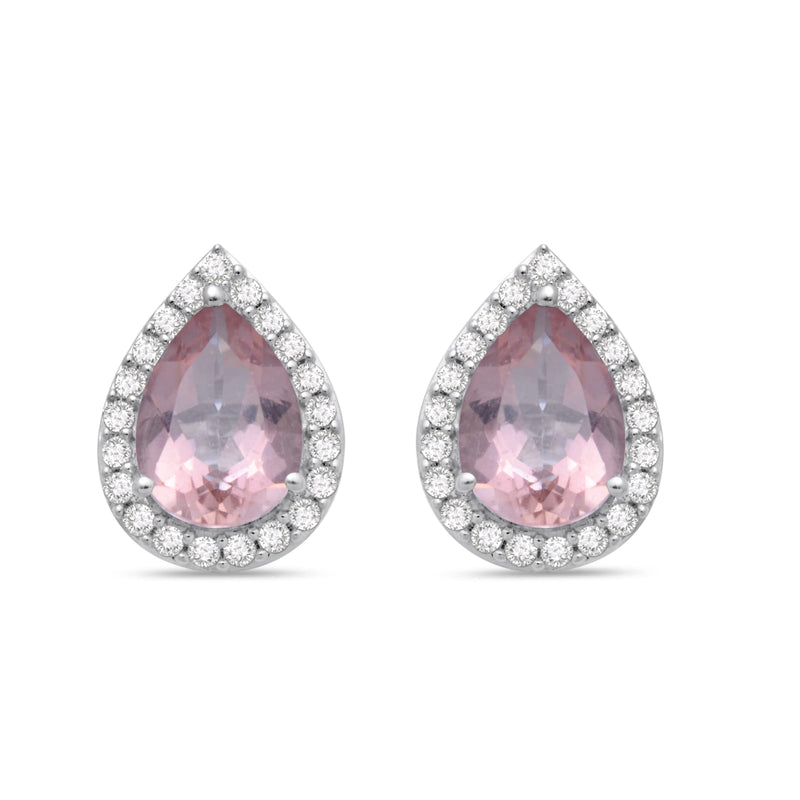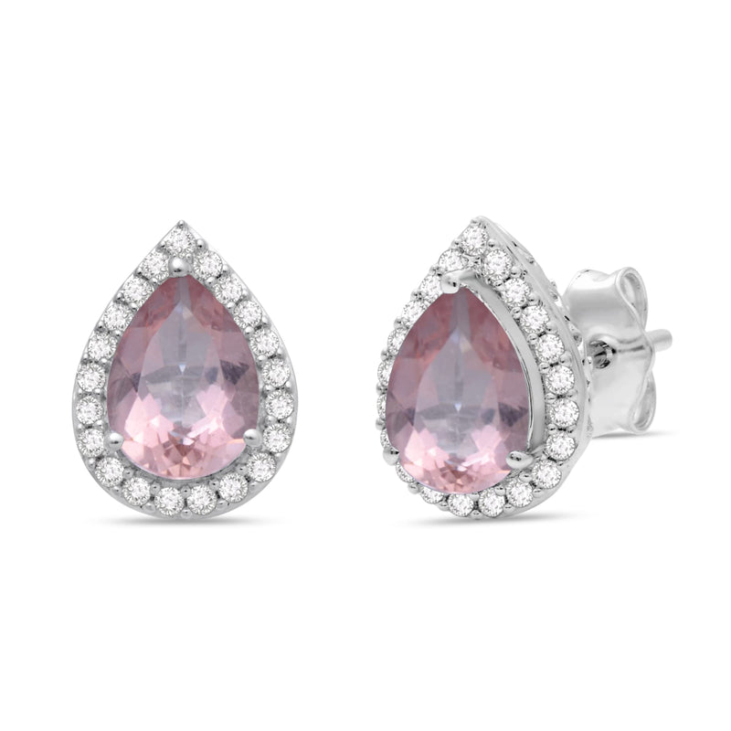 • Load image into Gallery viewer, Jewelili Sterling Silver Pear Cut Morganite and Round Created White Sapphire Stud Earrings