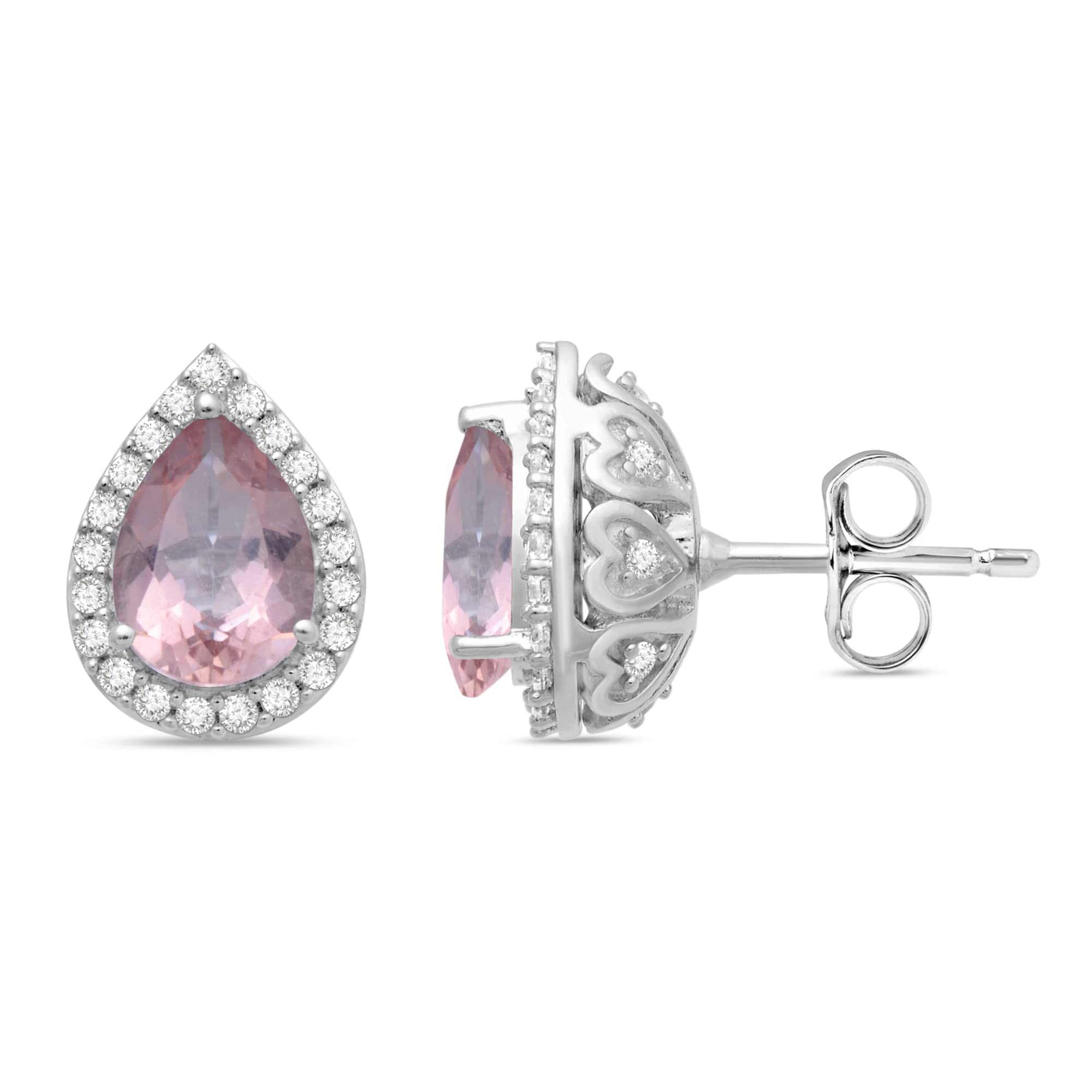 Jewelili Sterling Silver Pear Cut Morganite and Round Created White Sapphire Stud Earrings