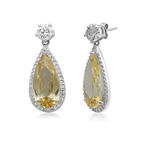 Jewelili Sterling Silver Pear Jonquil Cubic Zirconia and Round Cubic Zirconia Teardrop Drop Earrings