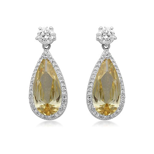 • Sterling Silver Pear Jonquil Cubic Zirconia and Round Cubic Zirconia Teardrop Drop Earrings