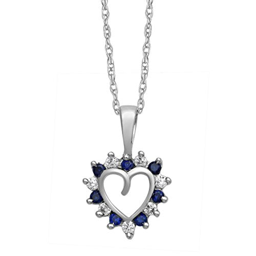 Jewelili Sterling Silver with Round Created Blue Sapphire and White Cubic Zirconia Heart Pendant Necklace