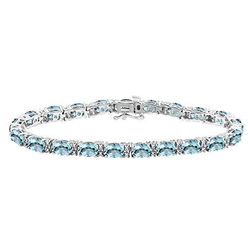 Jewelili Sterling Silver With Round Diamonds and Oval Shape Sky Blue Topaz Bracelet