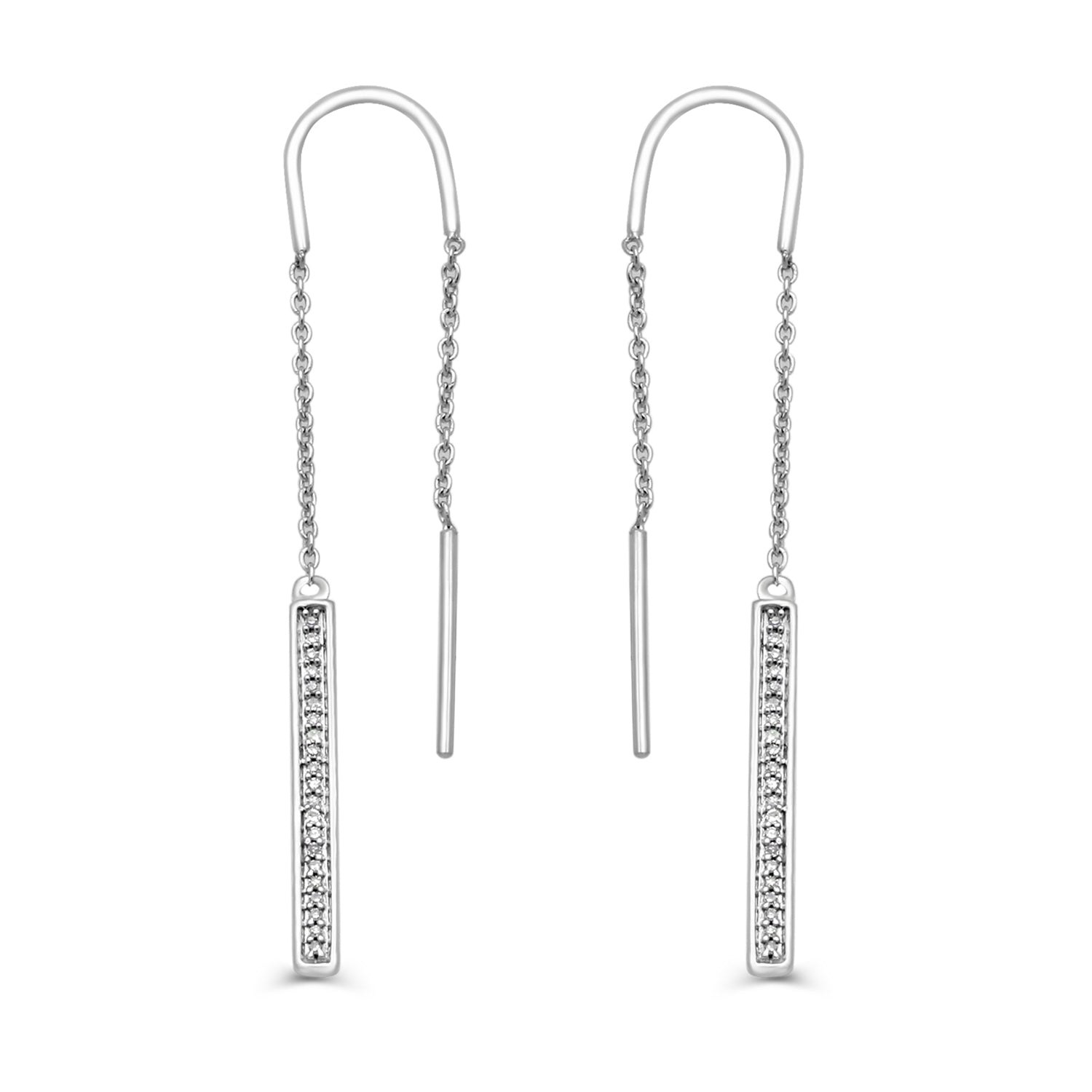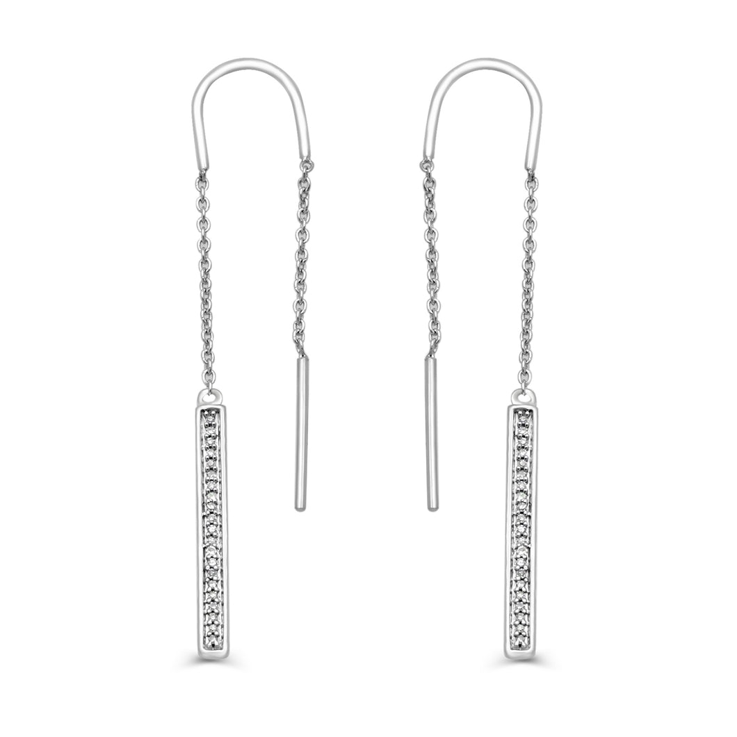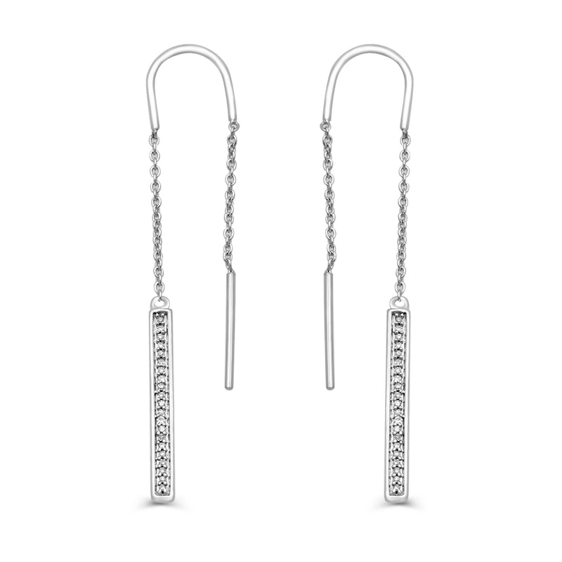 Jewelili Sterling Silver With Round Emerald and White Diamonds Earrings