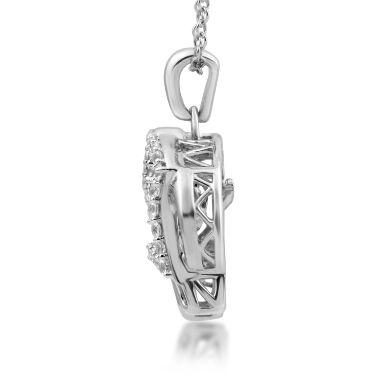 Jewelili Sterling Silver with Heart Shape Blue Spinal and Round Created White Sapphire Elephant Pendant Necklace