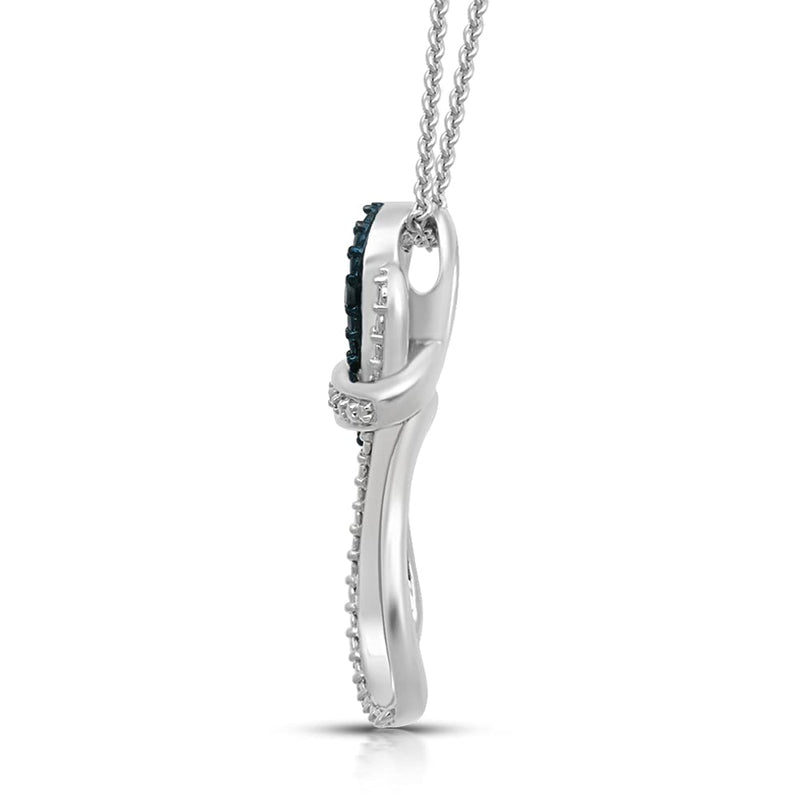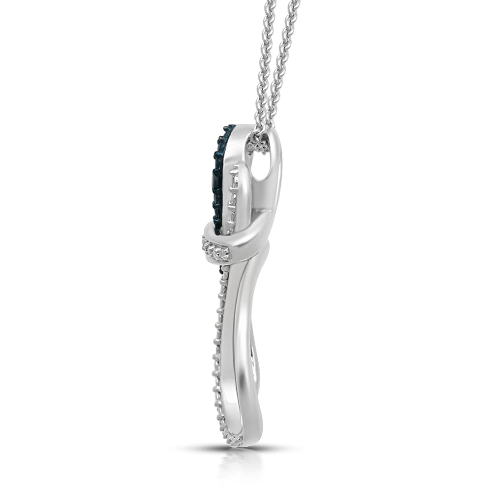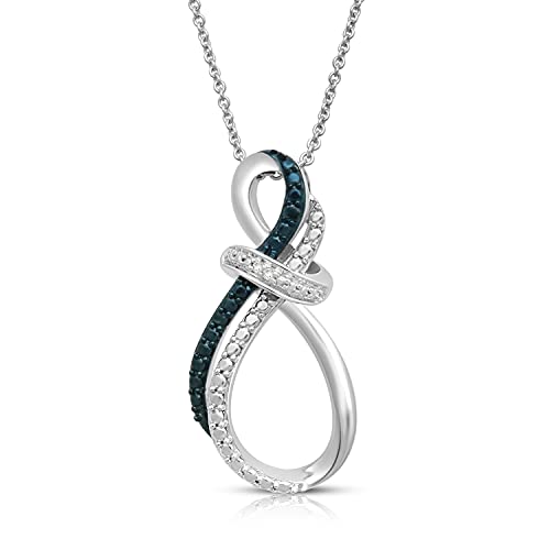 Jewelili Sterling Silver Treated Black, Blue and Natural White Round Diamonds Infinity Twist Pendant Necklace