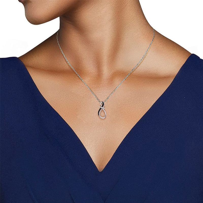 • Infinity Twist Pendant Necklace in Sterling Silver with Treated Blue and Natural White Round Diamond Accent , 18” Cable Chain