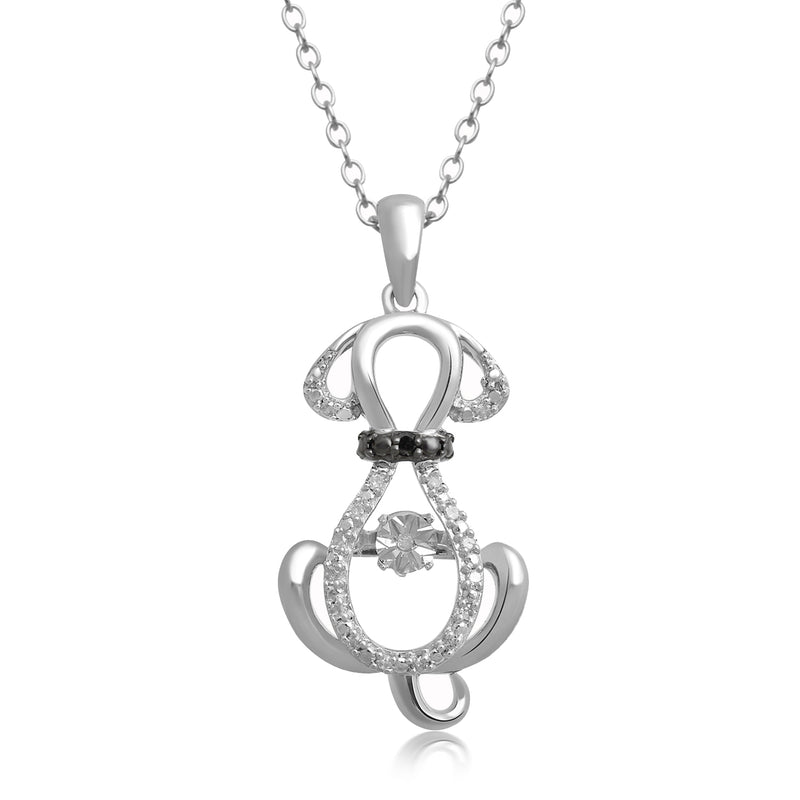 Jewelili Sterling Silver White and Treated Black Round Diamonds Dog Pendant Necklace