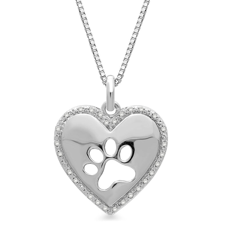Details: Sterling Silver White Diamond Accented Dog Paw Heart Pendant Necklace, 18" Box Chain