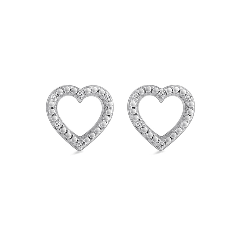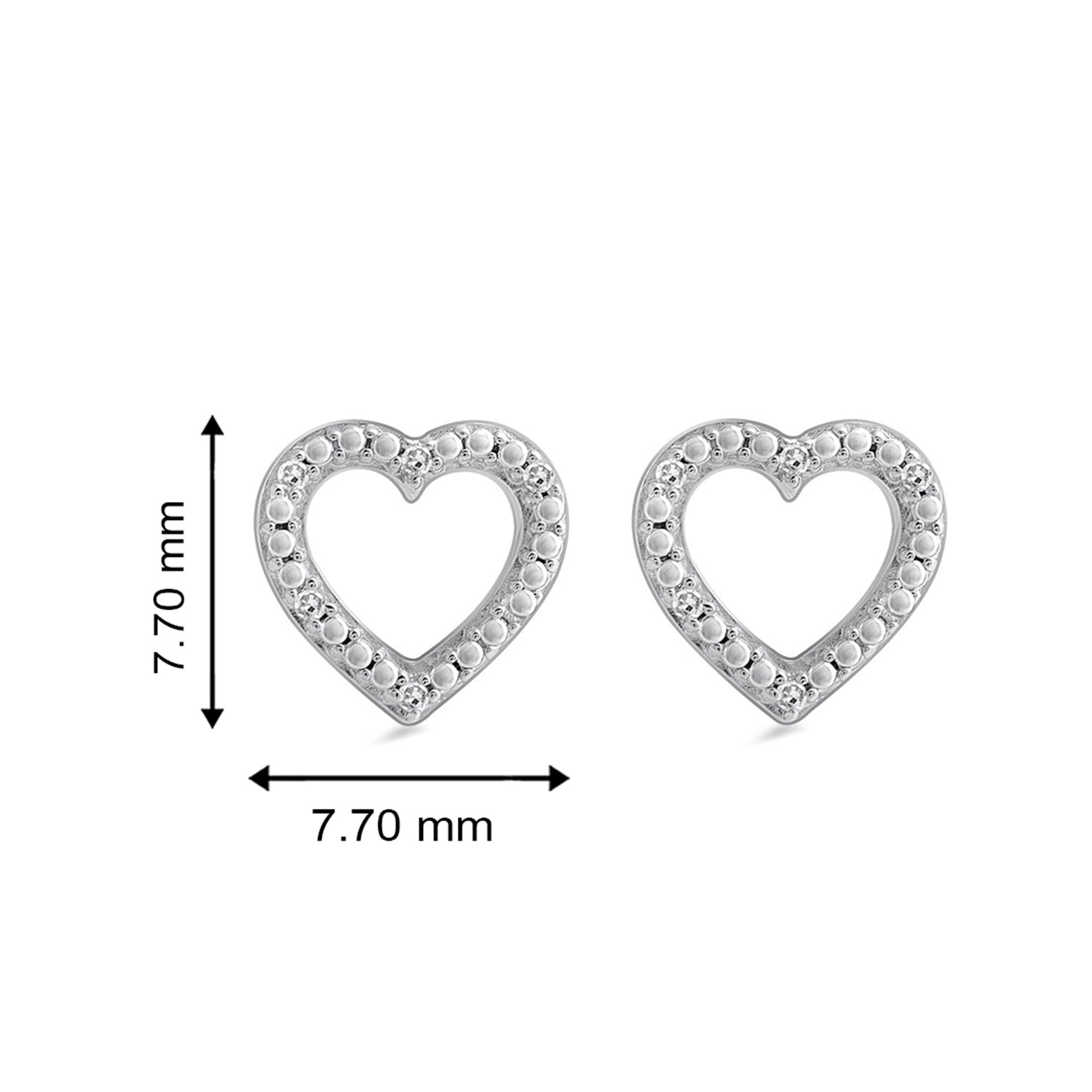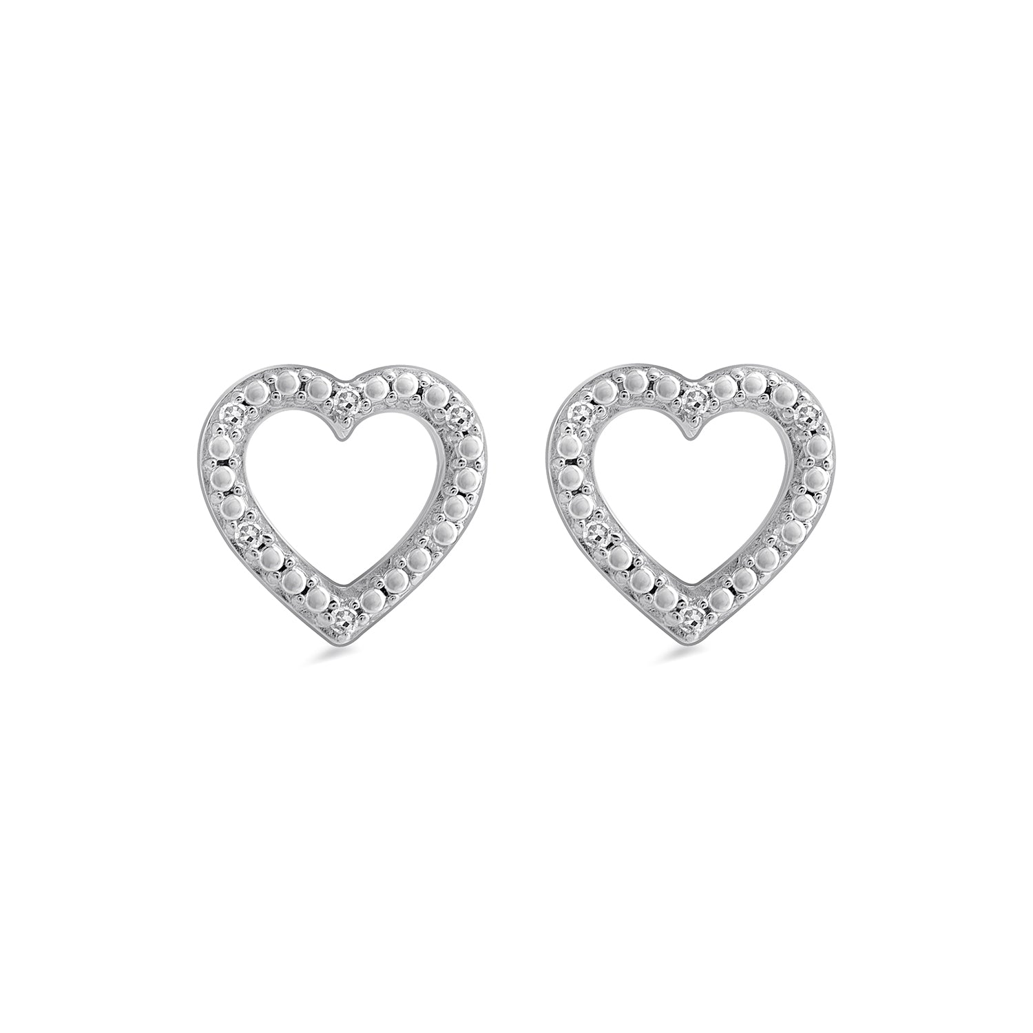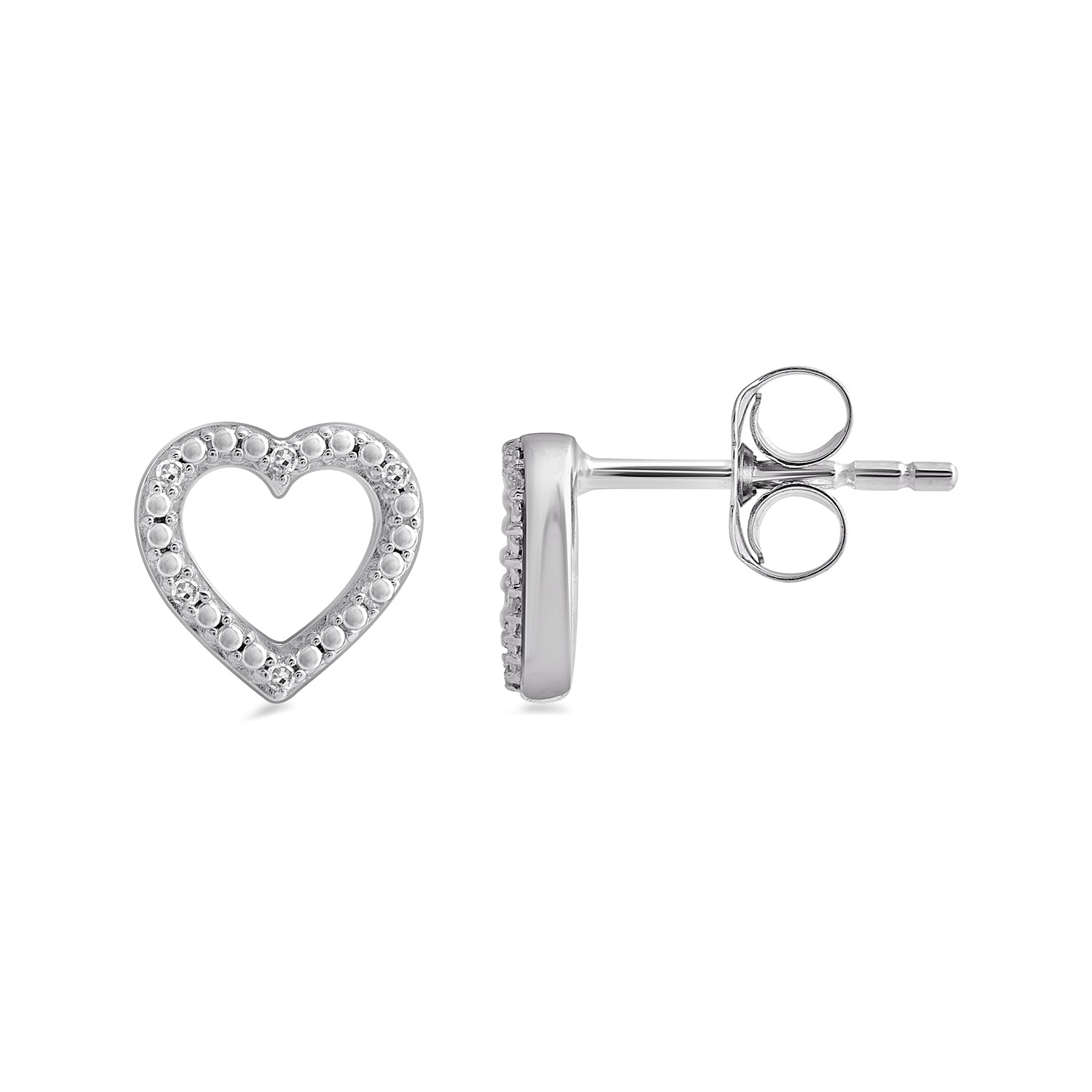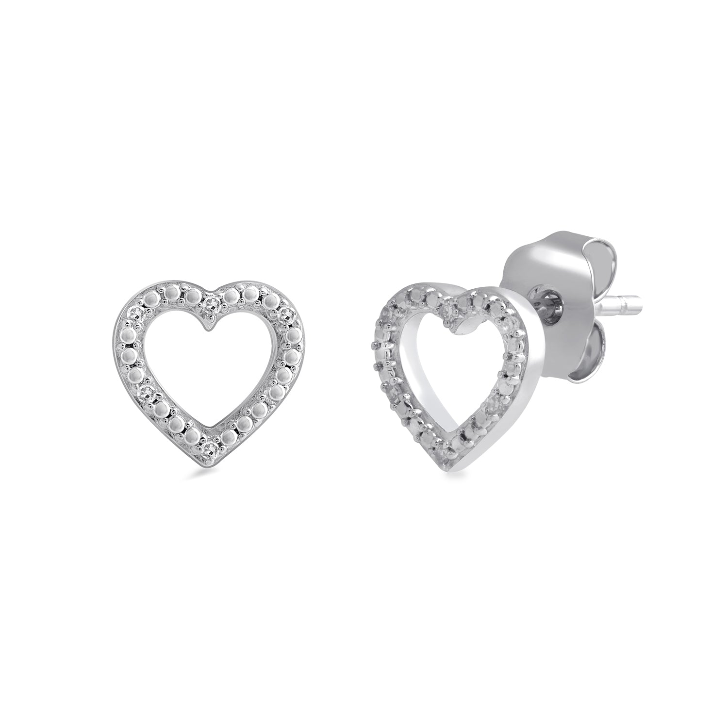 Jewelili Sterling Silver With White Round Diamonds Heart Shape Stud Earrings