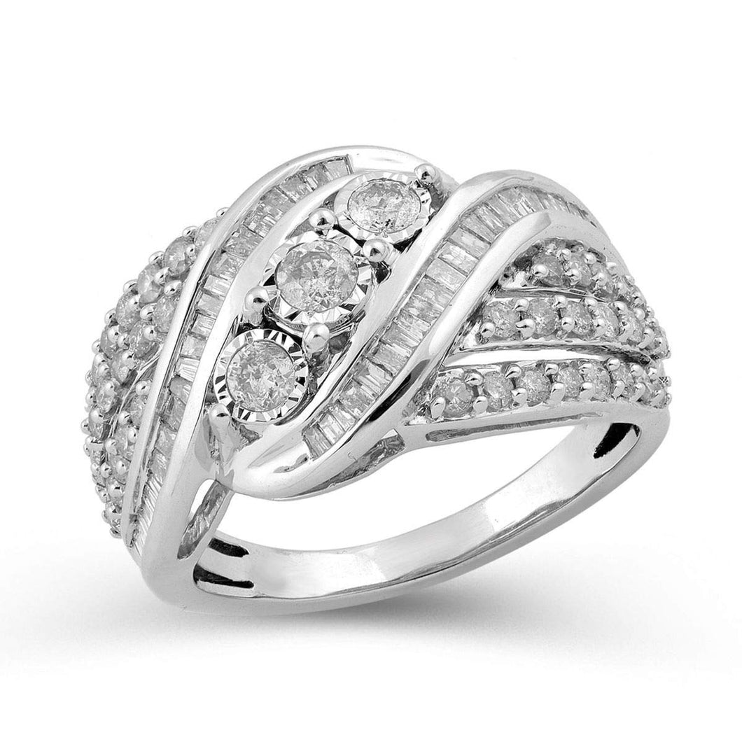 • Sterling Silver With 1.0 Cttw Natural White Diamonds Engagement Ring
