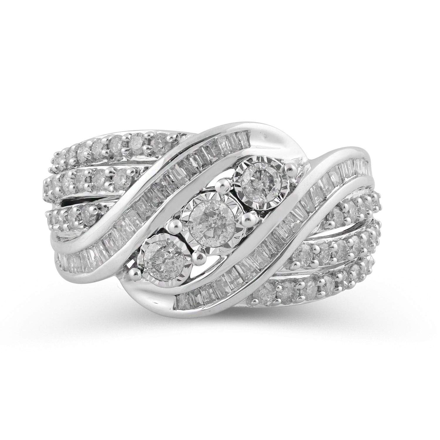 Jewelili Sterling Silver With 1.0 CTTW Natural White Diamonds Engagement Ring