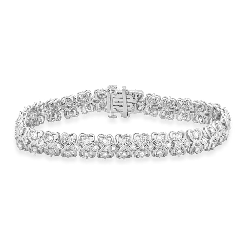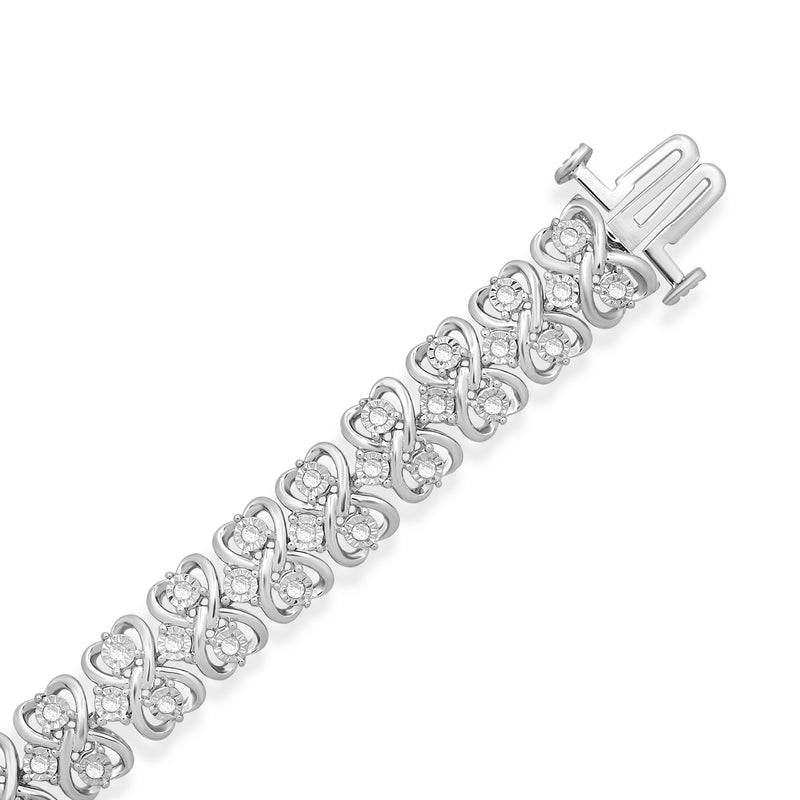• Sterling Silver With 1.00 Cttw Natural Round Diamond Link Bracelet, 7.5"